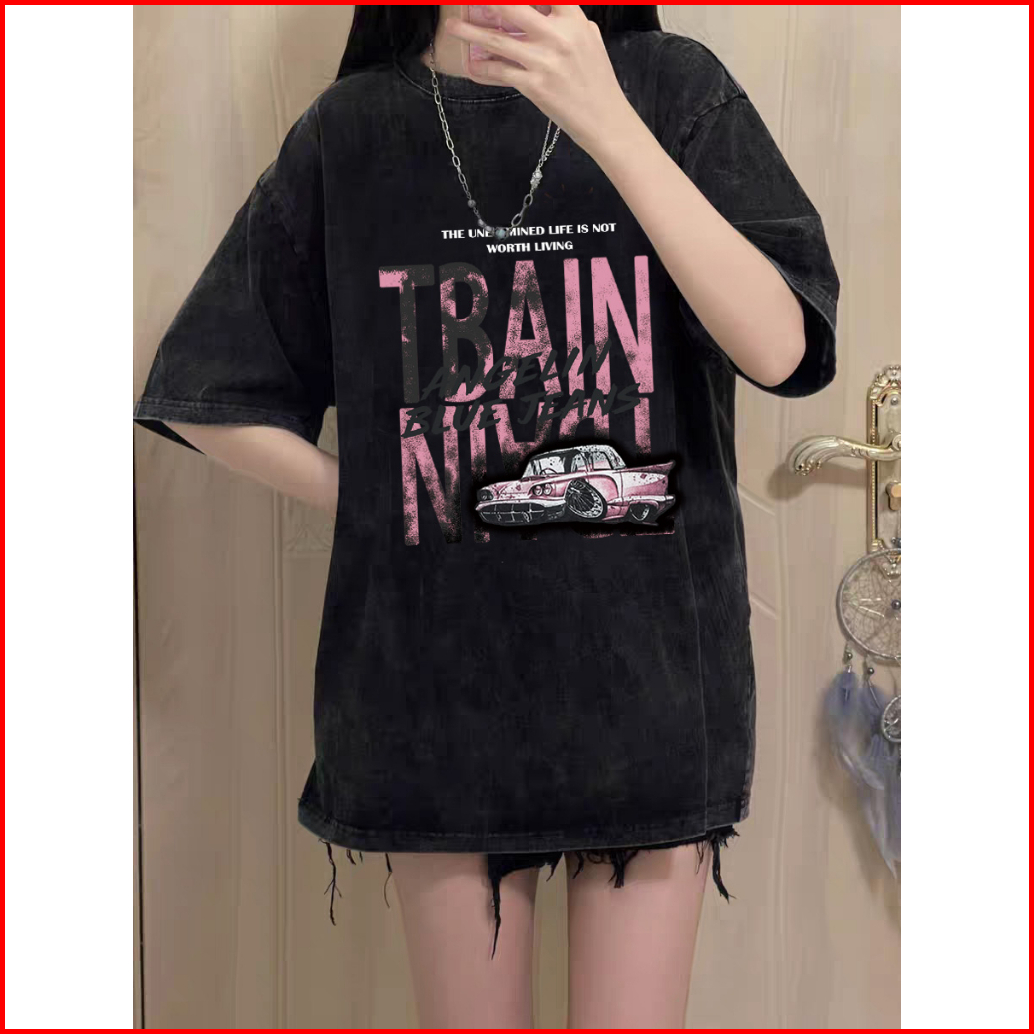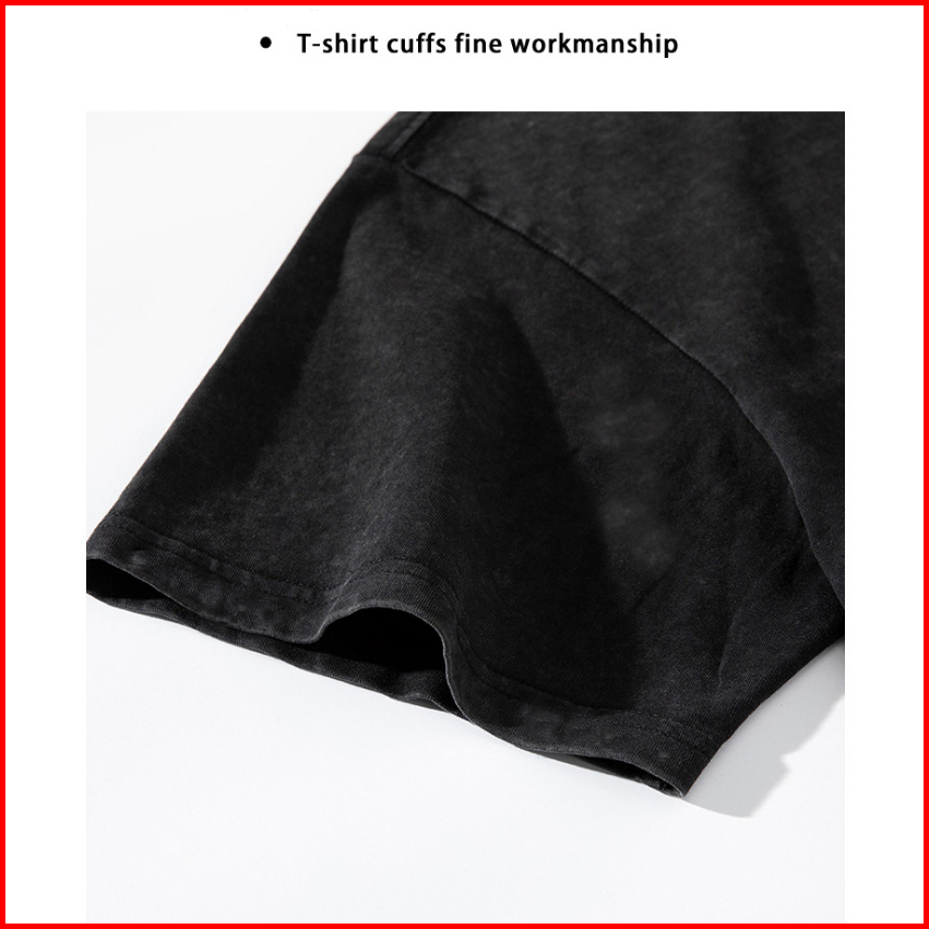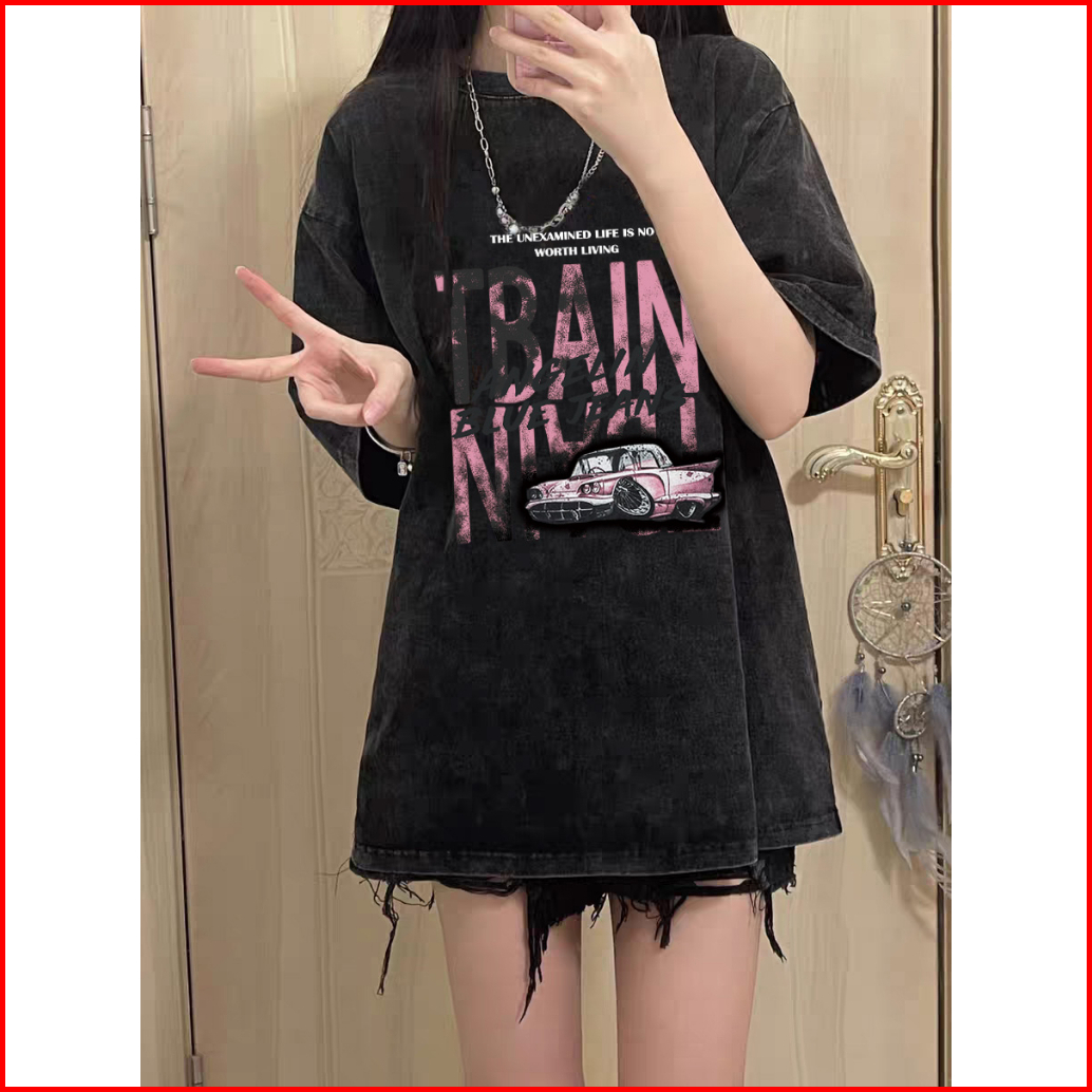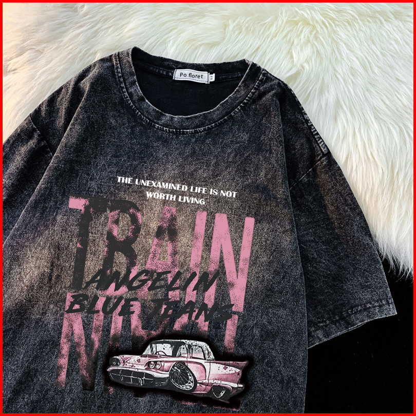 Po Floret Washed T Shirt Oversize Lengan Pendek Kaos Hip Hop Dark Retro Katun Murni Wanita Top Hitam