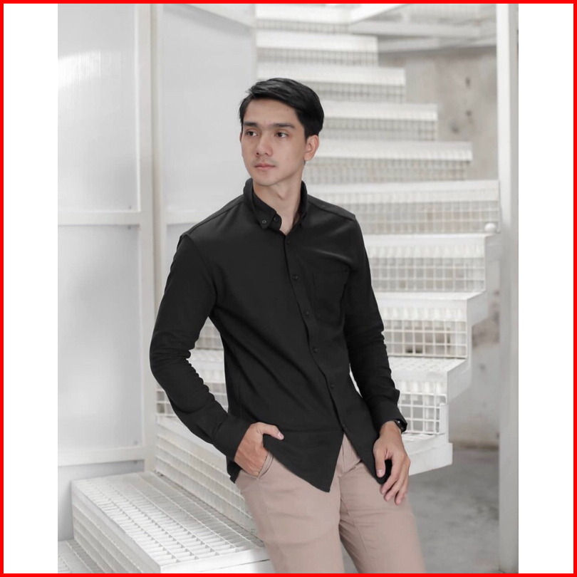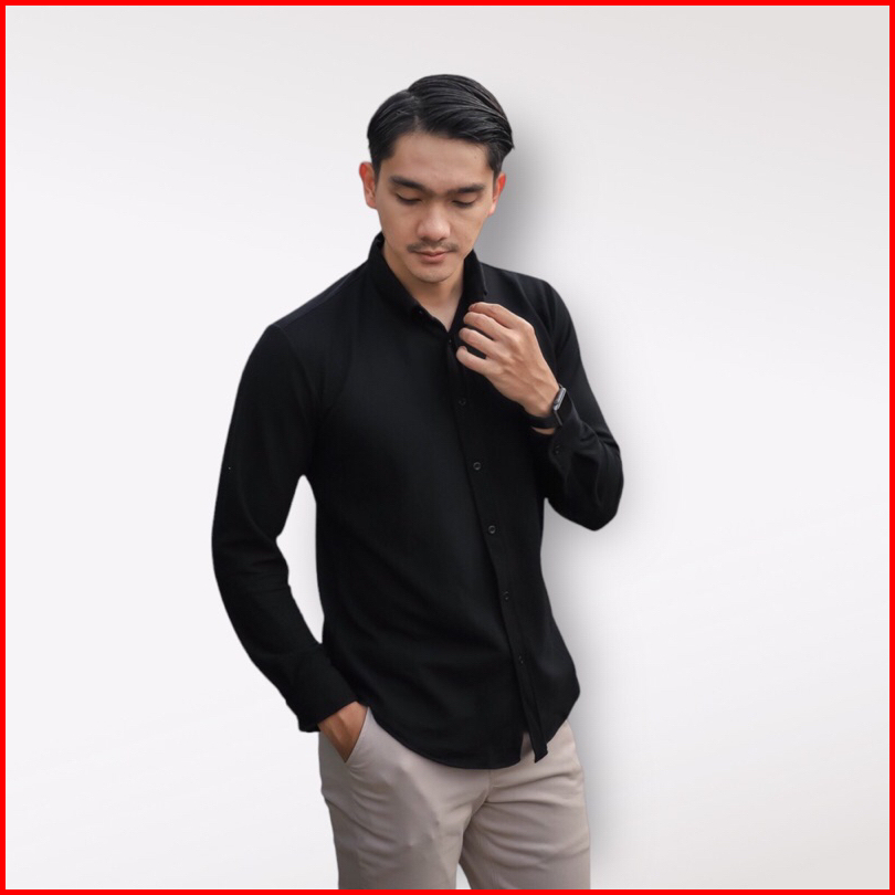 Aljosa Kemeja Pria Polos Hitam Lengan Panjang Kerja Kantor