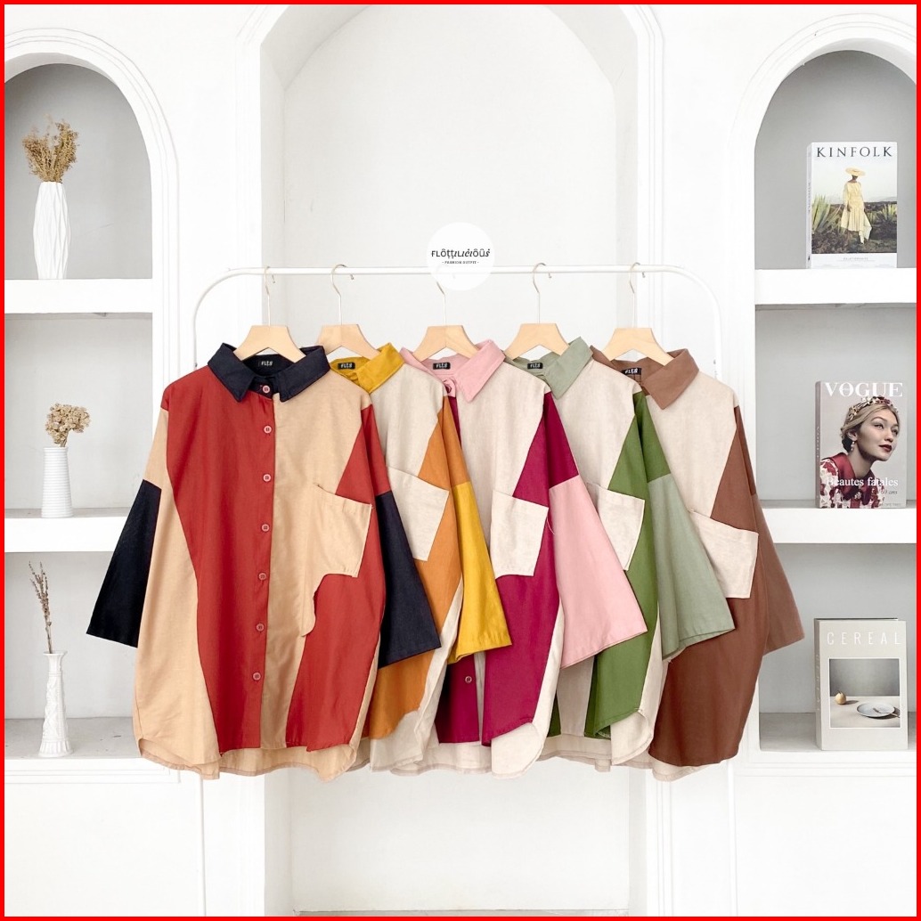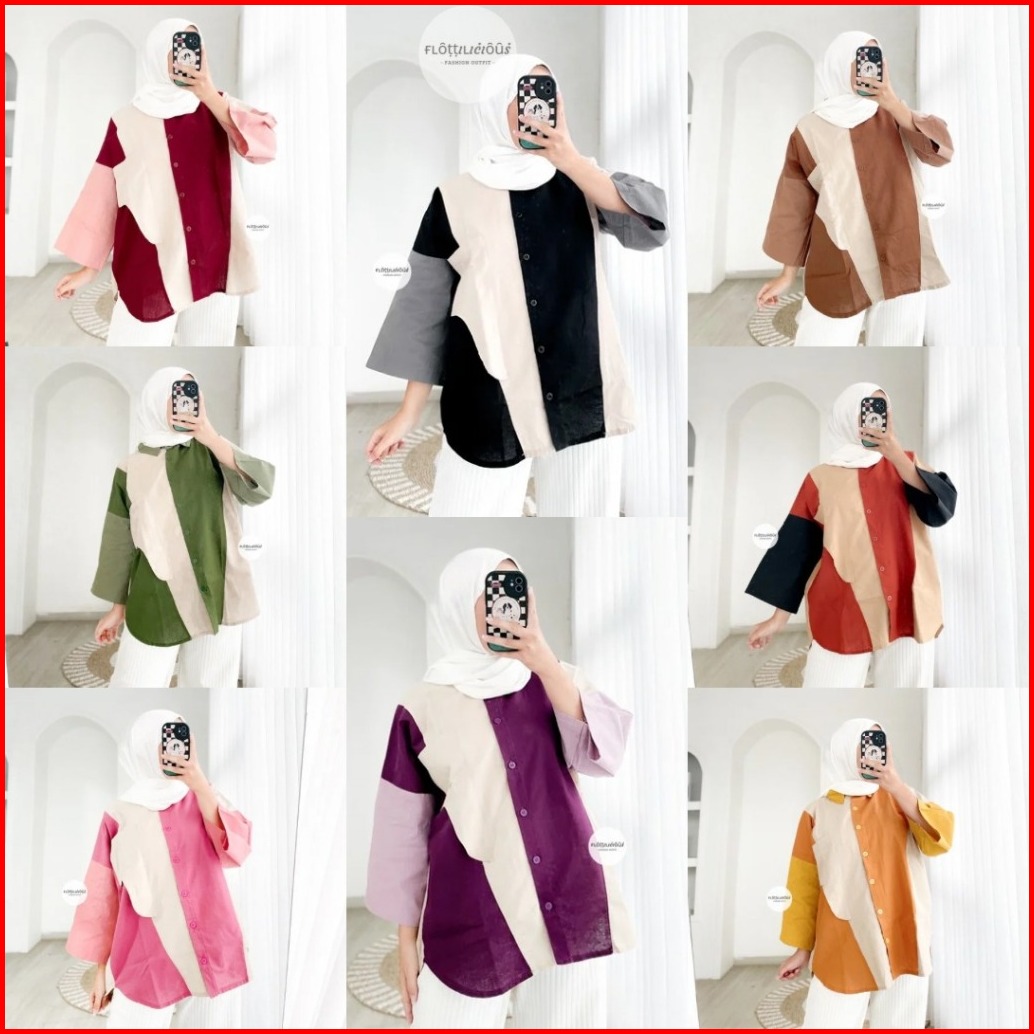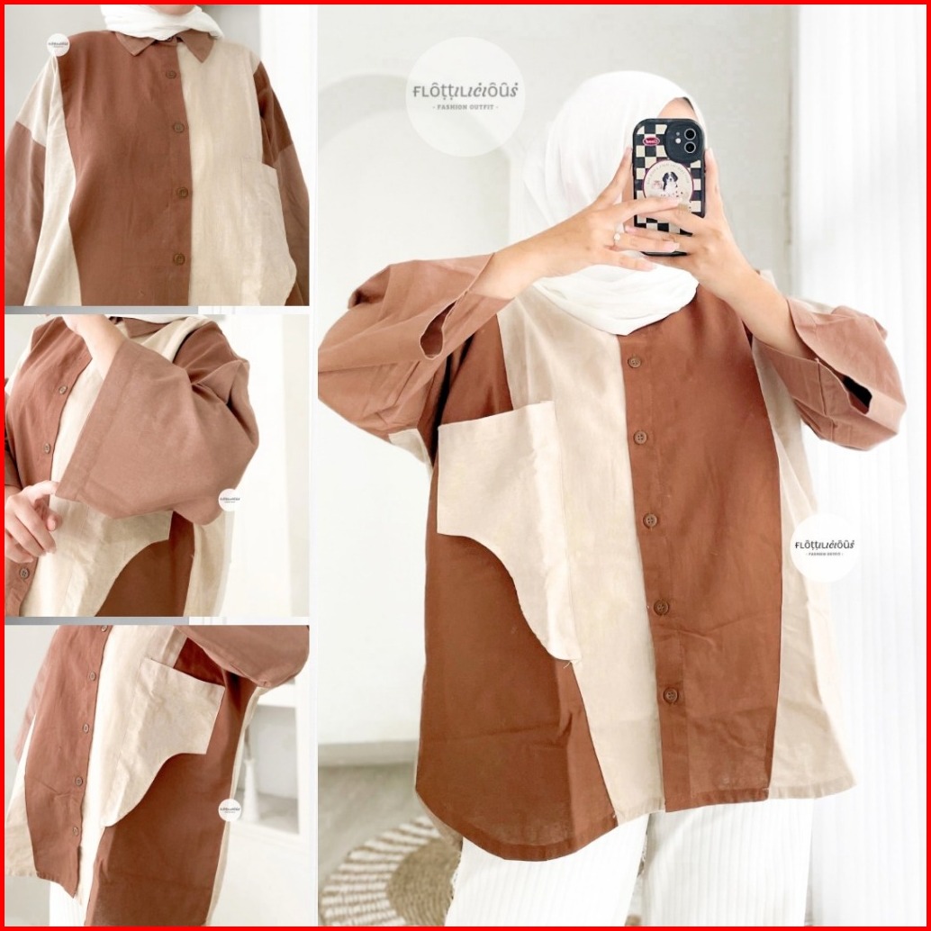 Maiza Shirt - Flottilicious Oversize Blouse Bahan Katun Linen Rami Bigsize Outfit Kemeja Santai Baju Wanita Jumbo Polos