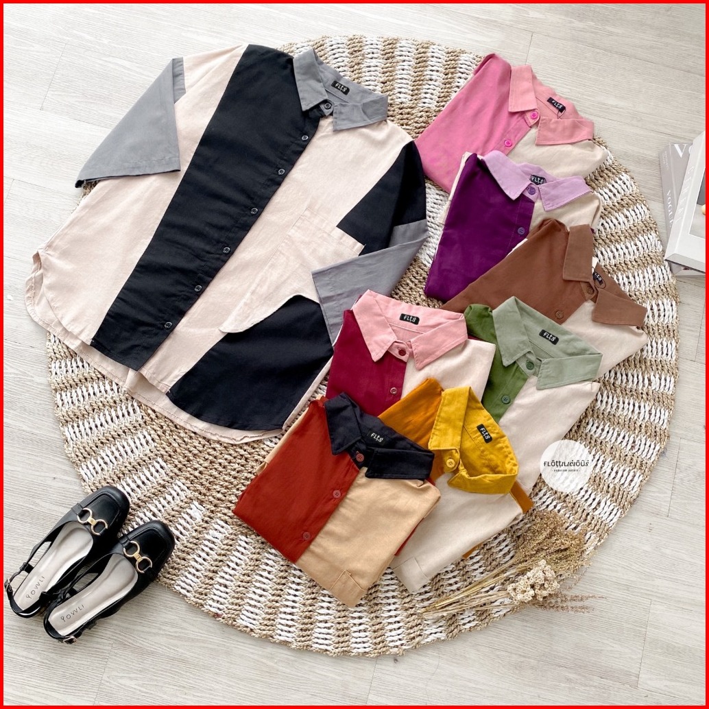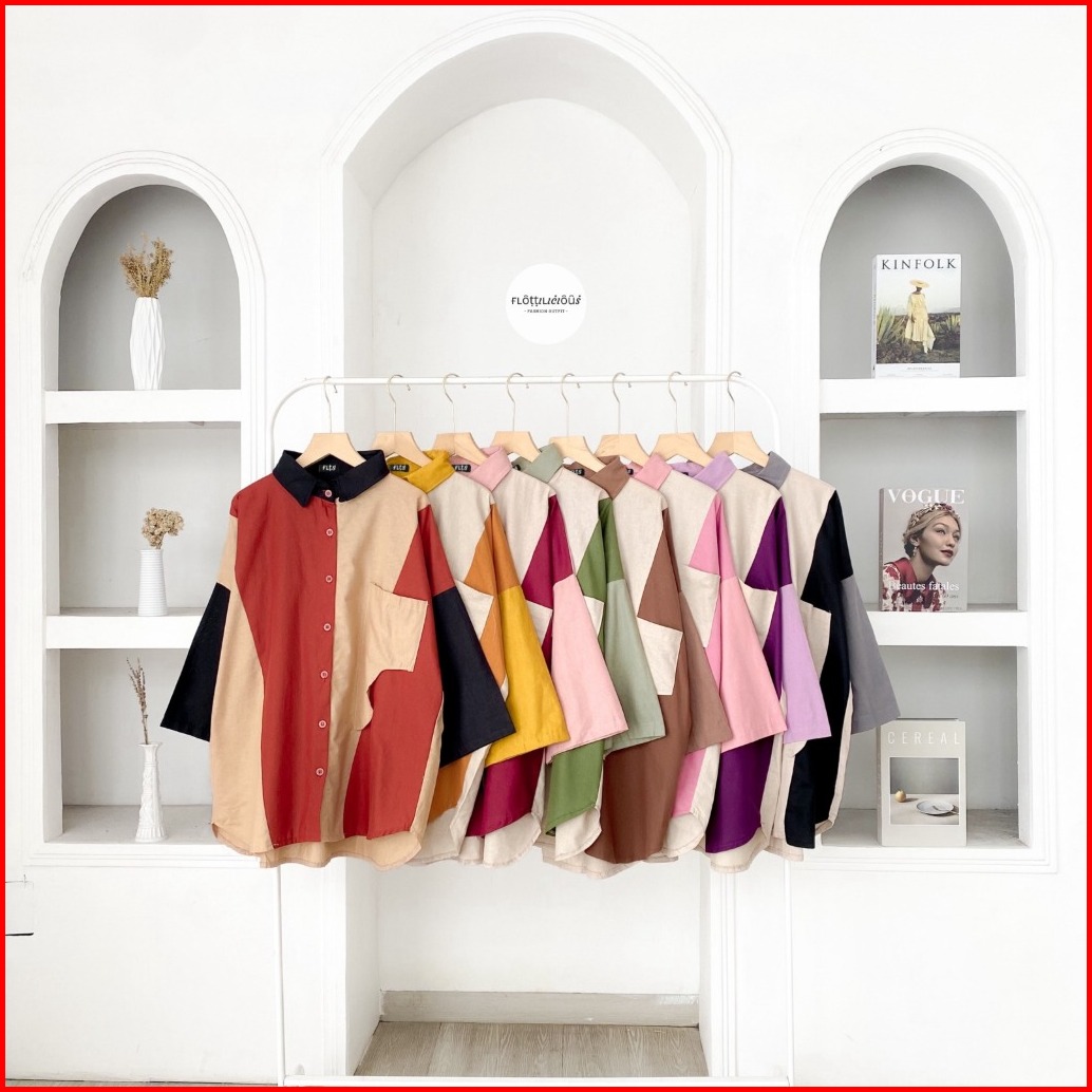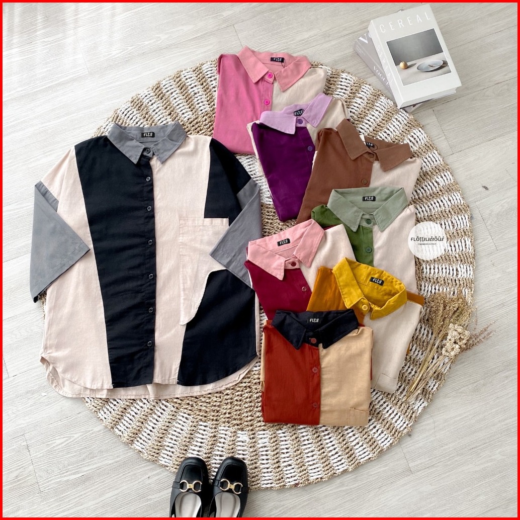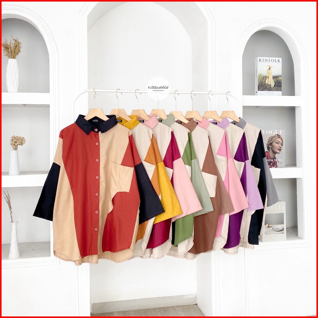 Maiza Shirt - Flottilicious Oversize Blouse Bahan Katun Linen Rami Bigsize Outfit Kemeja Santai Baju Wanita Jumbo Polos