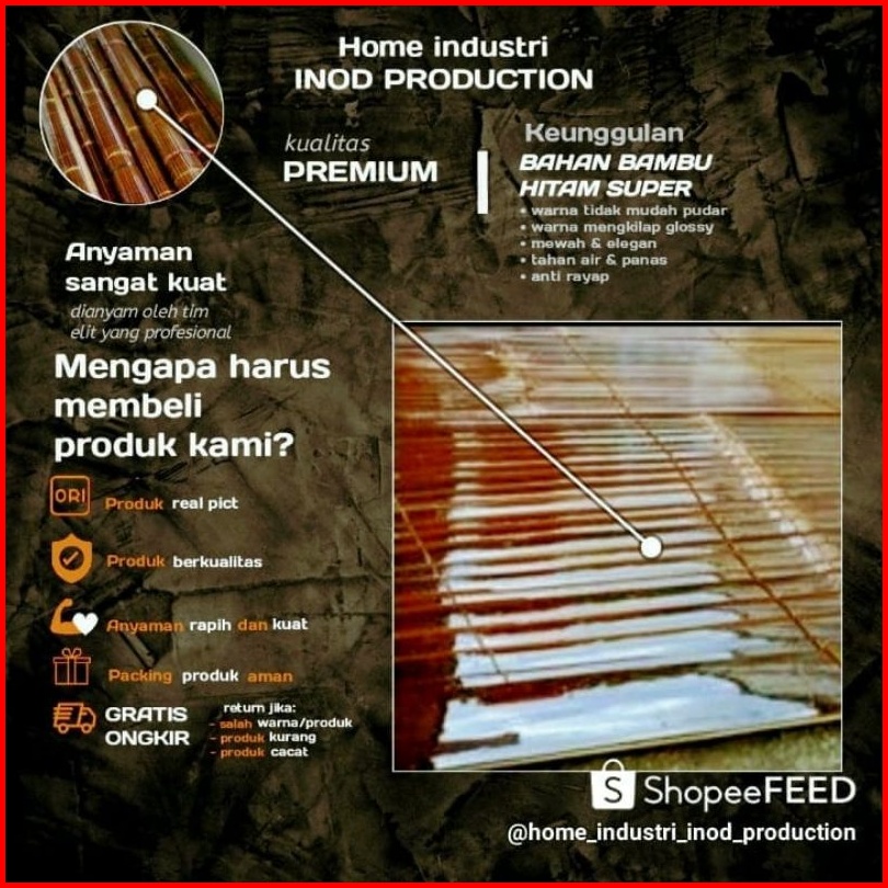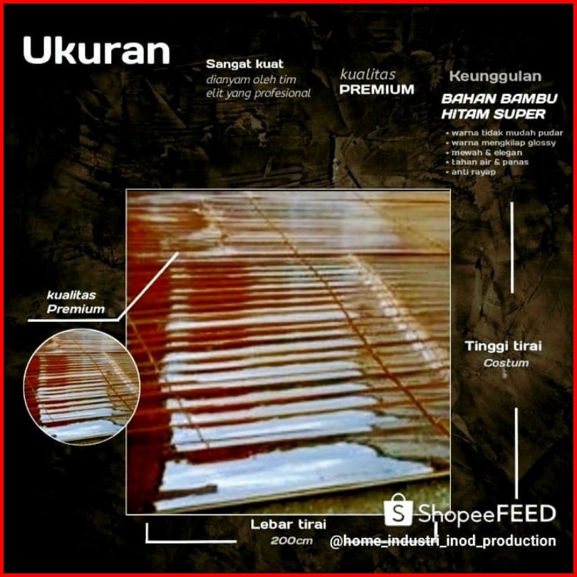Tirai Bambu Hitam Vernis Anti Air 2x2 Meter