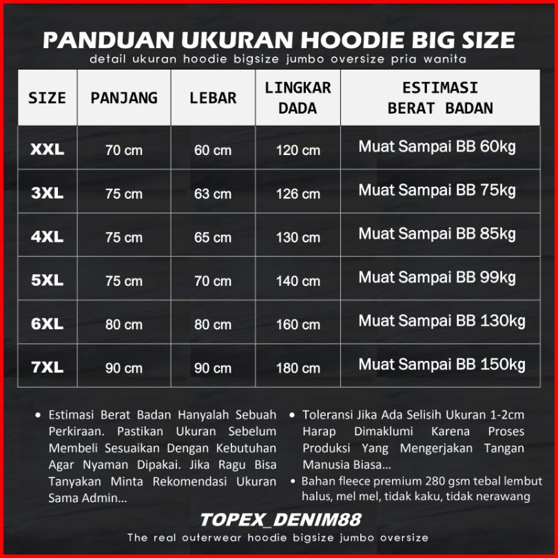 Hoodie Pria Wanita Big Size Jumbo Oversize Muat Sampai Bb 150kg