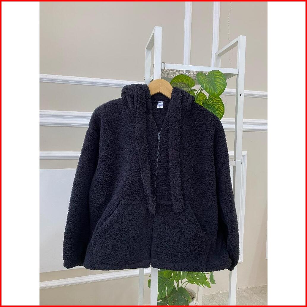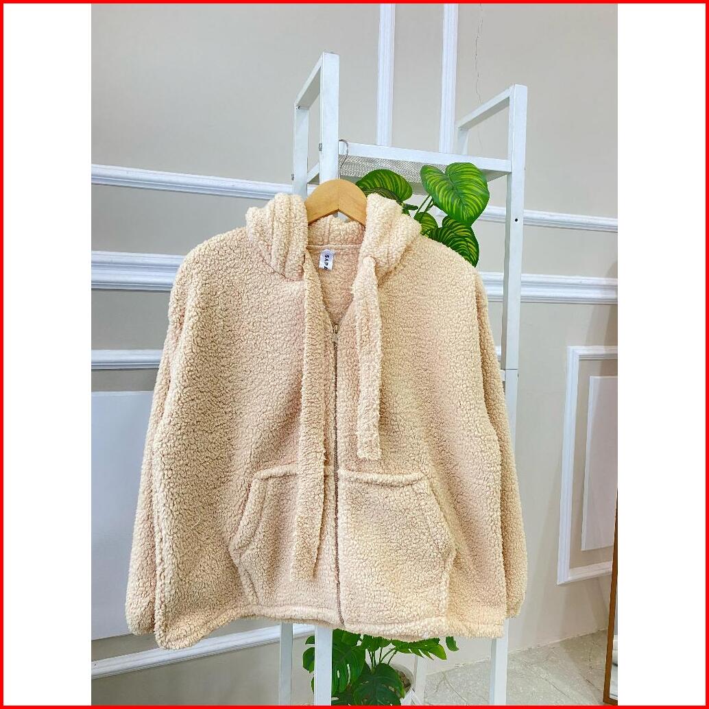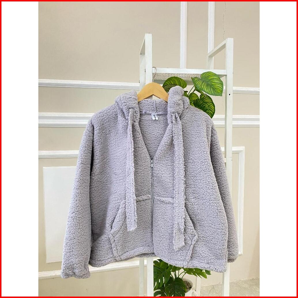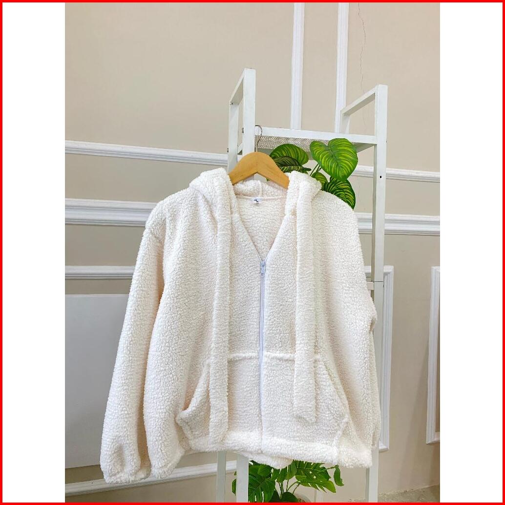 Sweater Hoodie Zip Cute Sherpa Bulu Domba