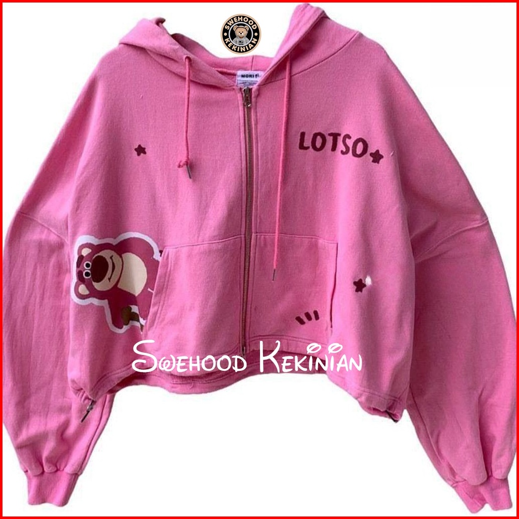 Lotso Bear Pink Premium Jaket Sweater Hoodie Zipper Wanita Kekinian Fashion Outfit Ootd Korean Style Suiter Krunek Jacke