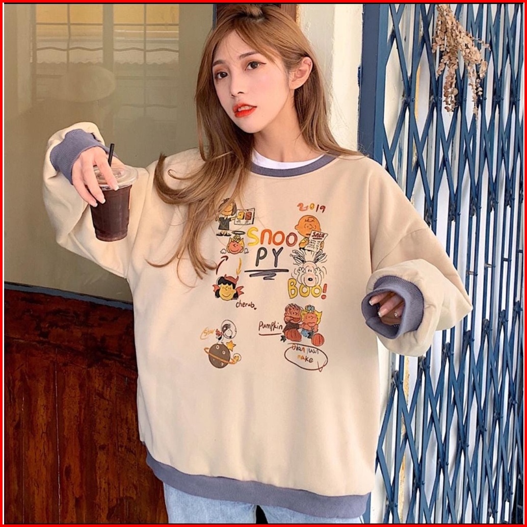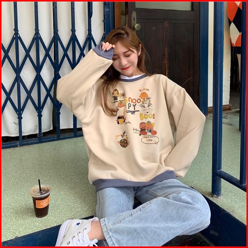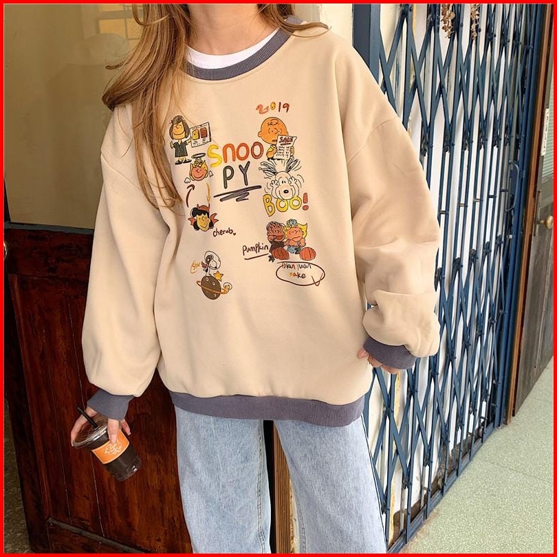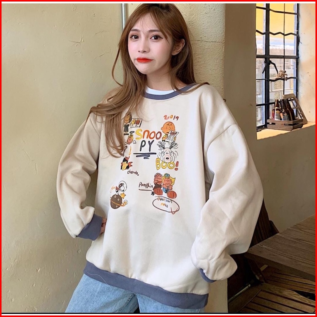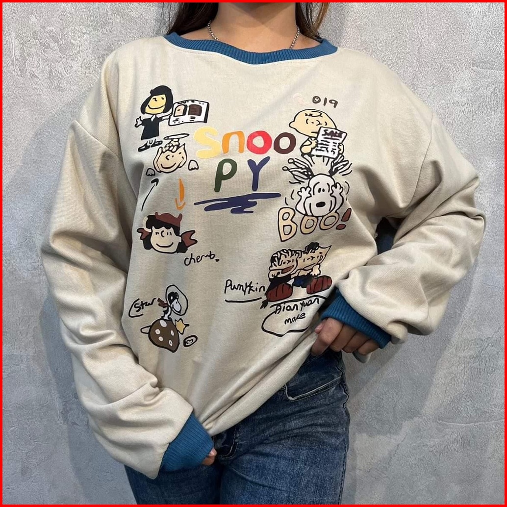New Snoopy Sweater Kekinian Ala Korea Crewneck Sweatshirt Kpop Wanita Oversize Fashion Outfit Ootd Korean Style Sweter C