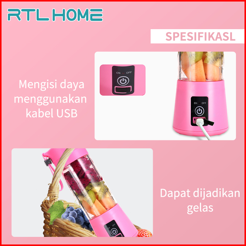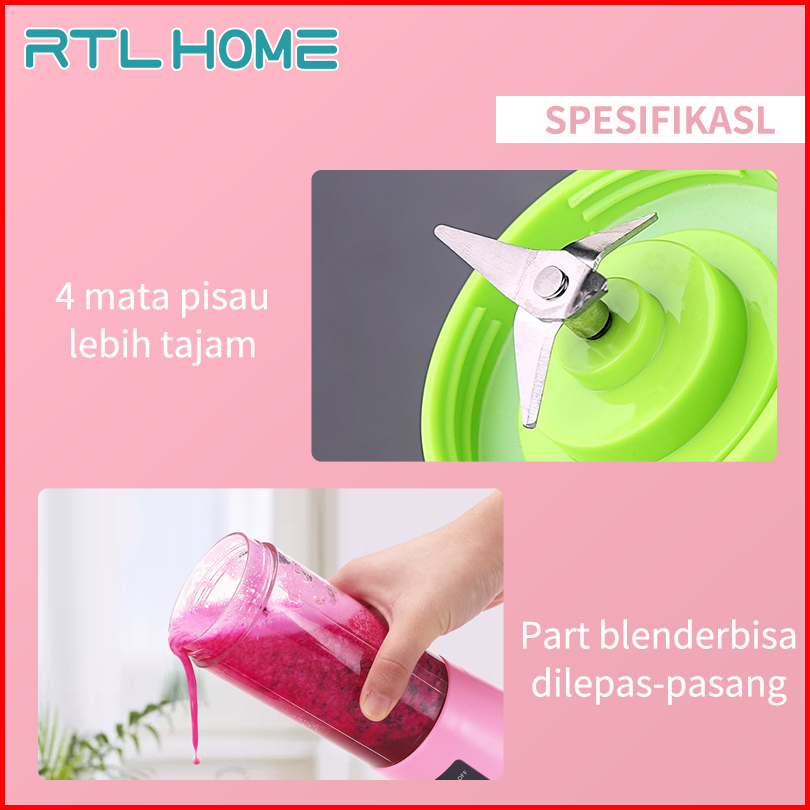 2in1 Rtl Blender Portable Juicer Usb 4 Mata Pisau Blender Juice Cup 400ml Blender Mini Portable