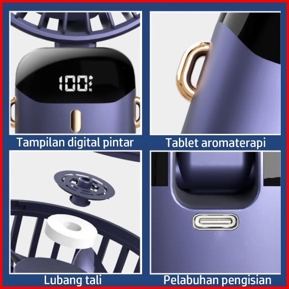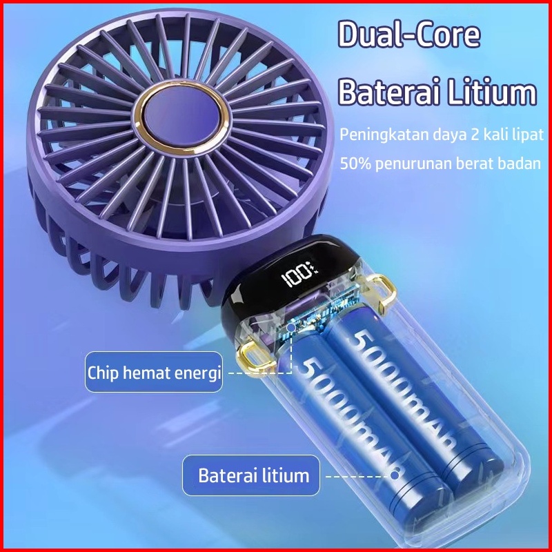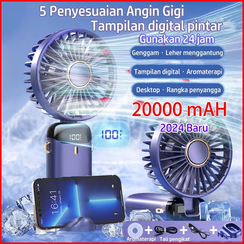 2025 Kipas Angin Mini Portable Usb 20000 Mah Kipas Lipat Leher 5-speed Wind Led Display