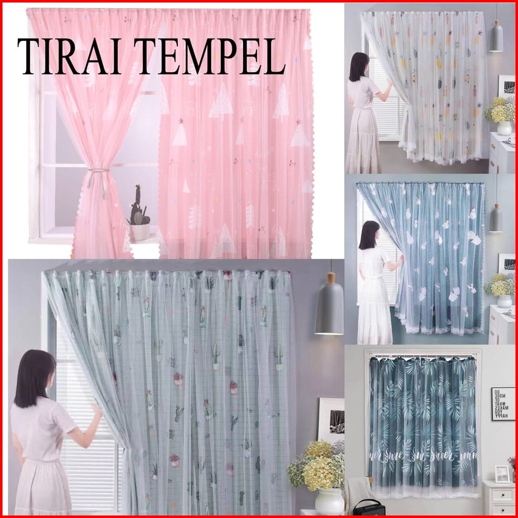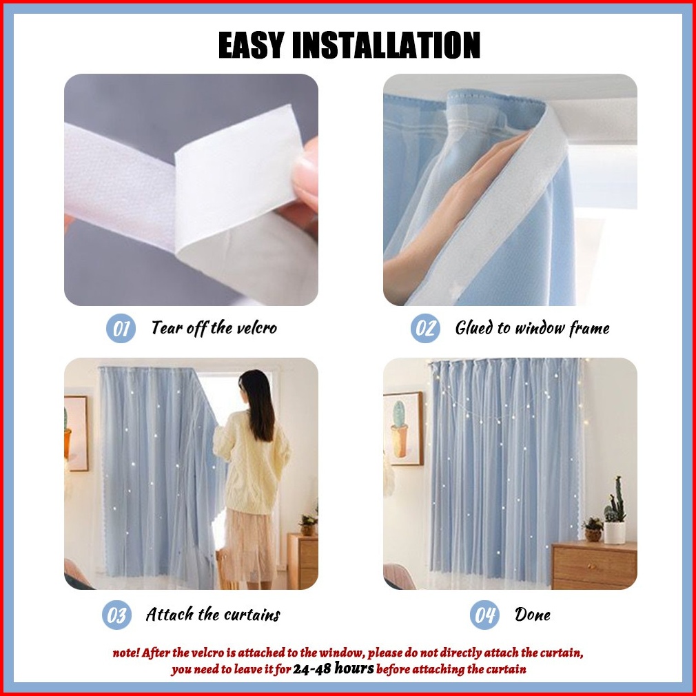 Serbaserbi Tirai Jendela Tirai Gorden Magic Tempel Tirai Hordeng Velcro Tanpa Paku Jendela Pintu Blackout Tanpa Bor