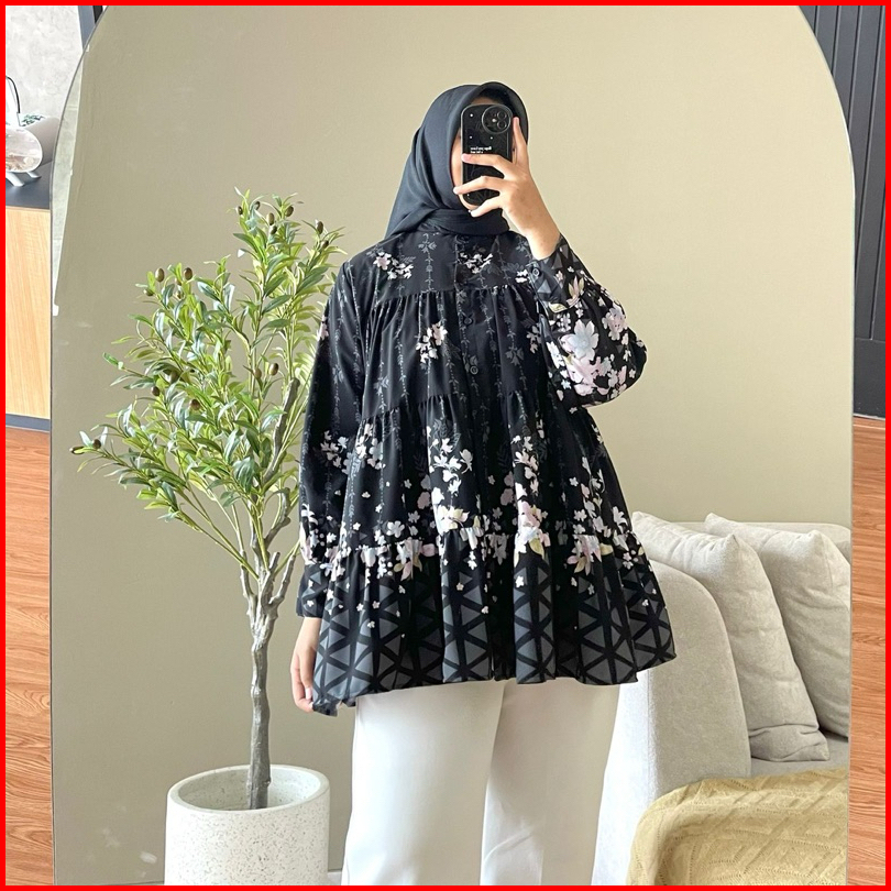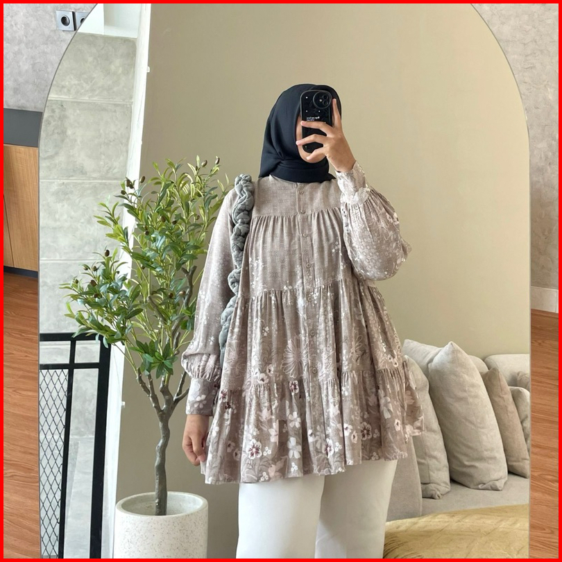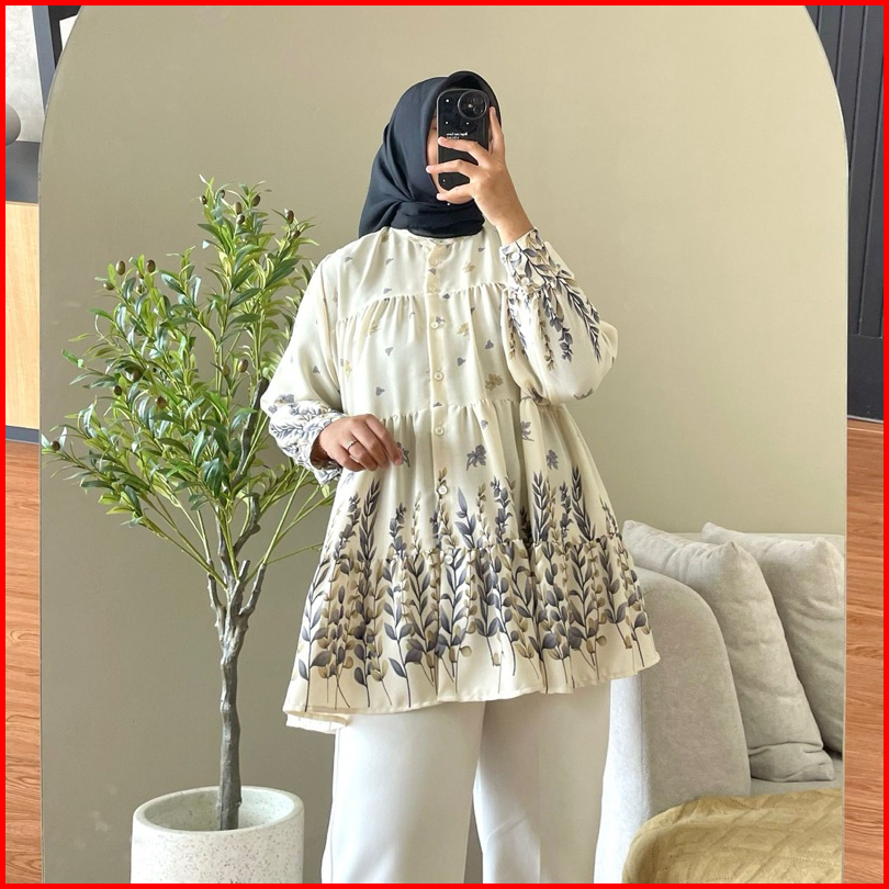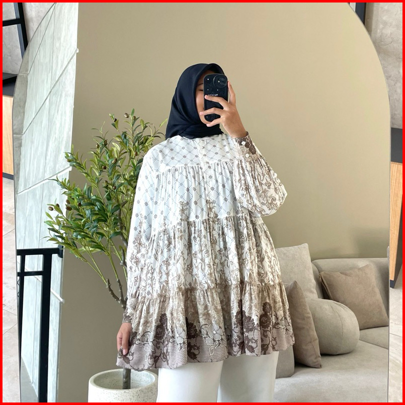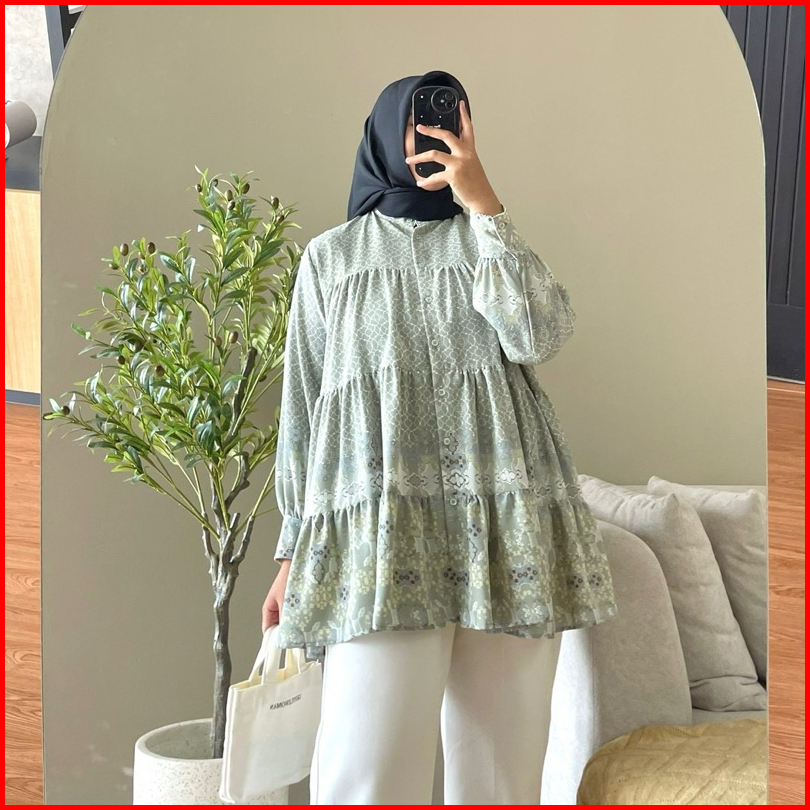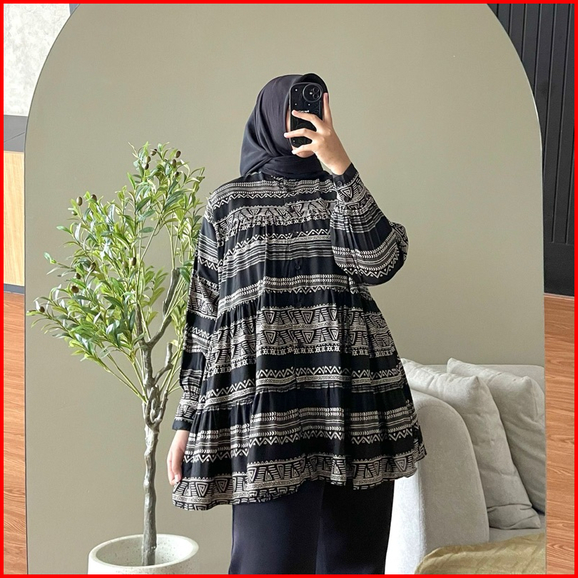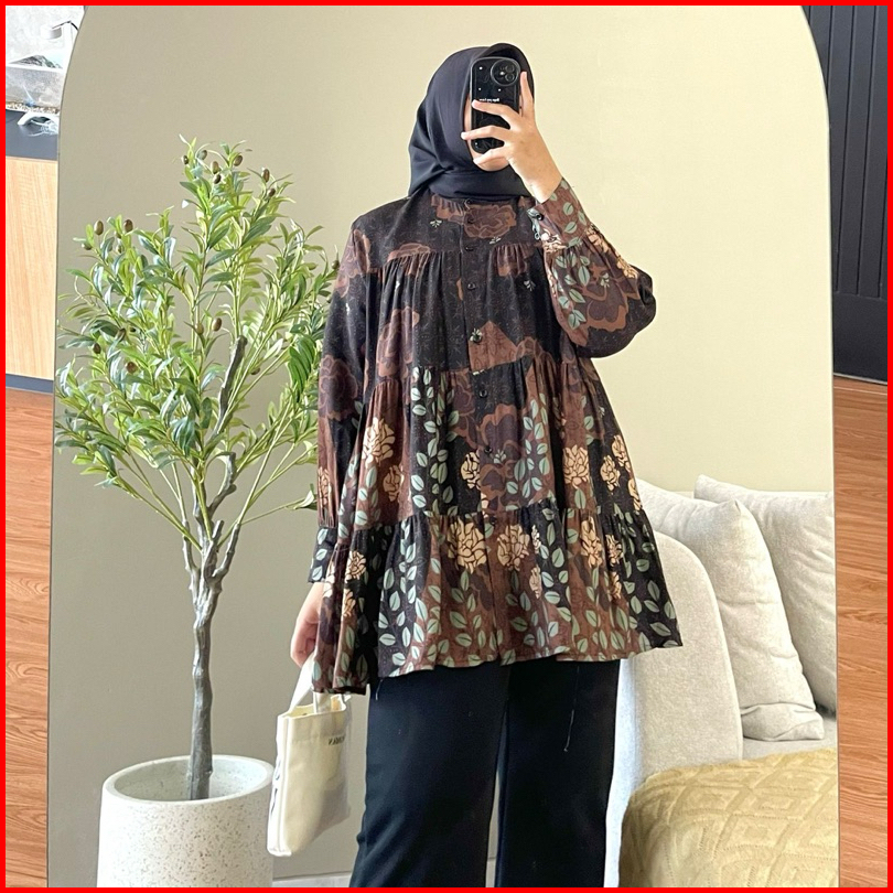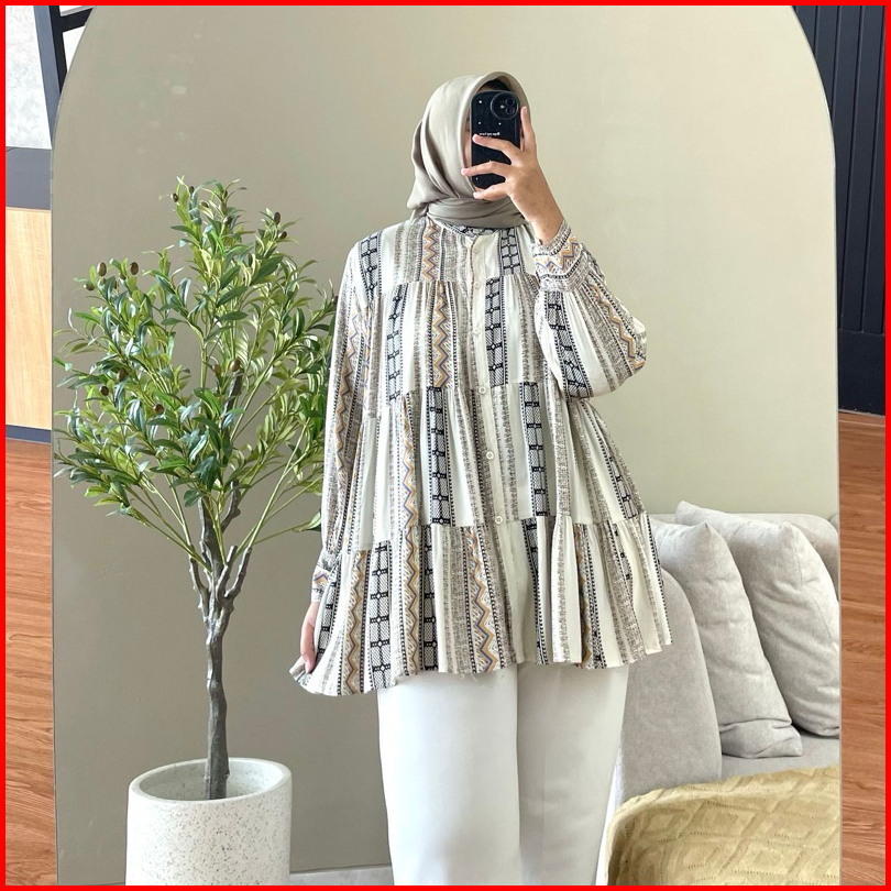 Hanako 40 Kemeja Rempel Motif Atasan Wanita Casual Blouse Vintage Kemeja Motif Etnik