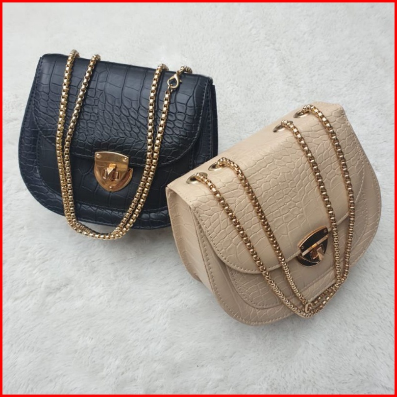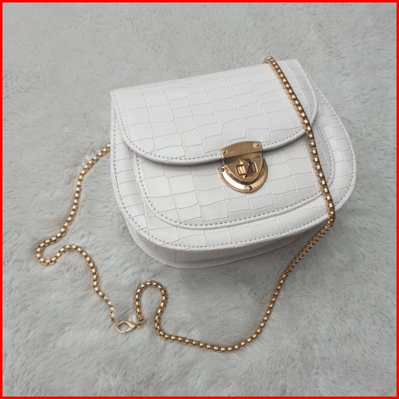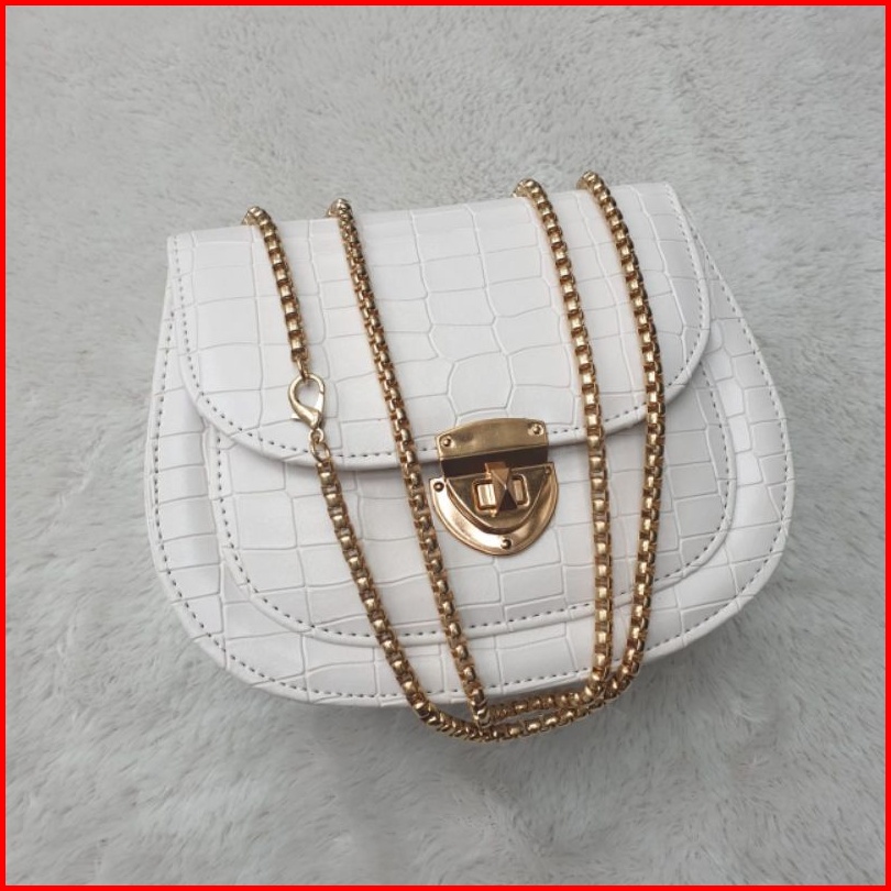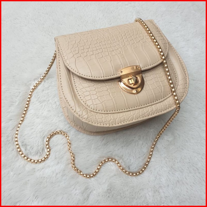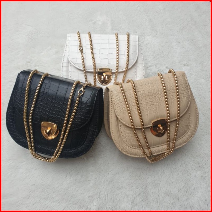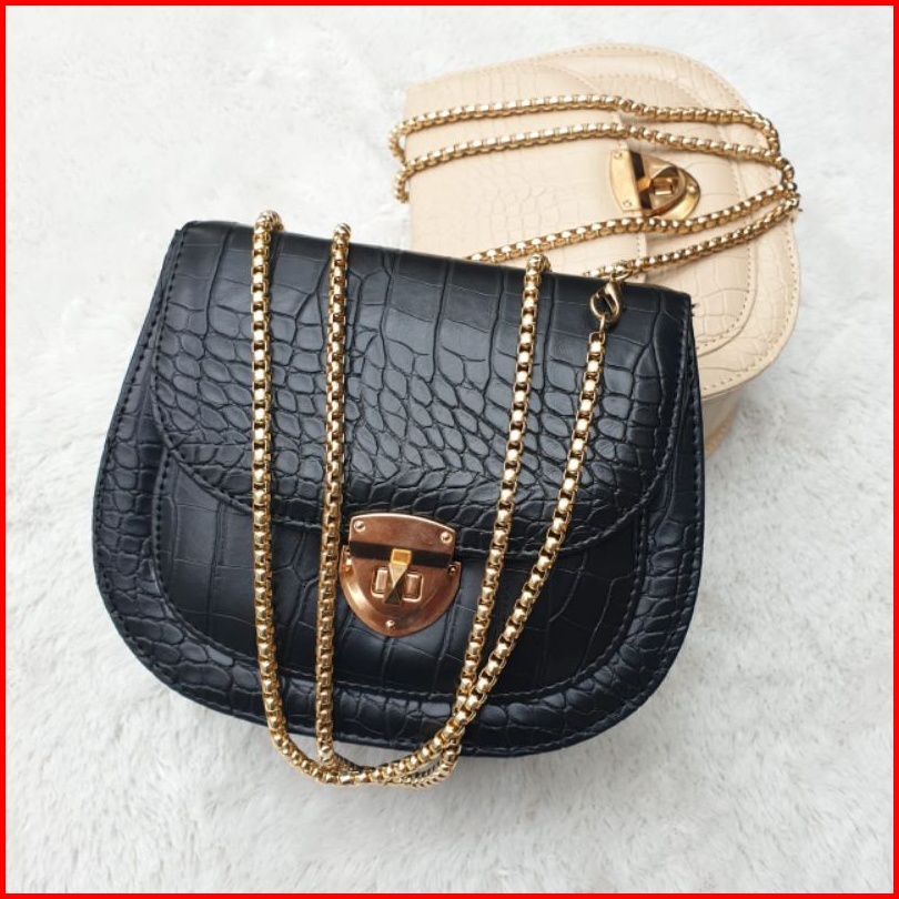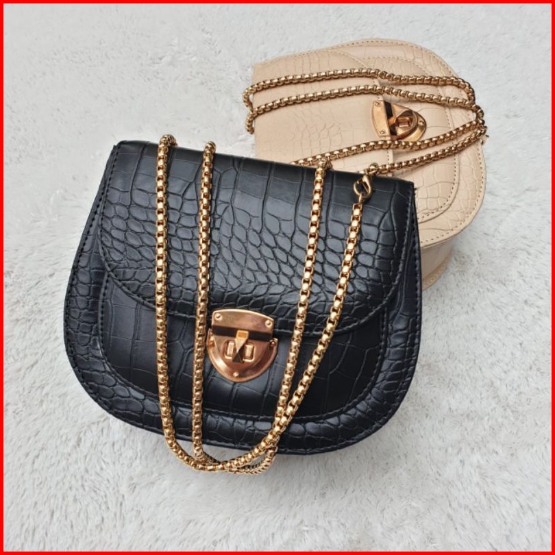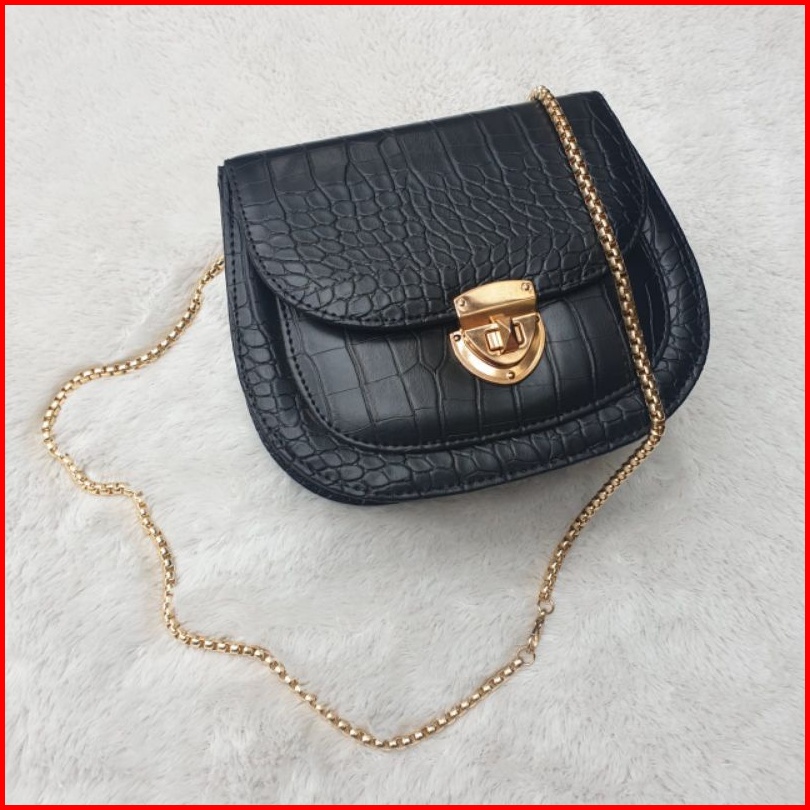 Enola Tas Selempang Wanita Tali Rantai Embose Croco Free Box Slingbag Perempuan 7090