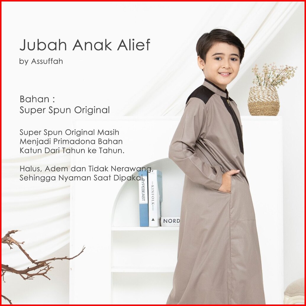 Assuffah I Jubah Anak Laki Laki 9 - 16 Tahun Lengan Panjang Resleting Depan Alief Series
