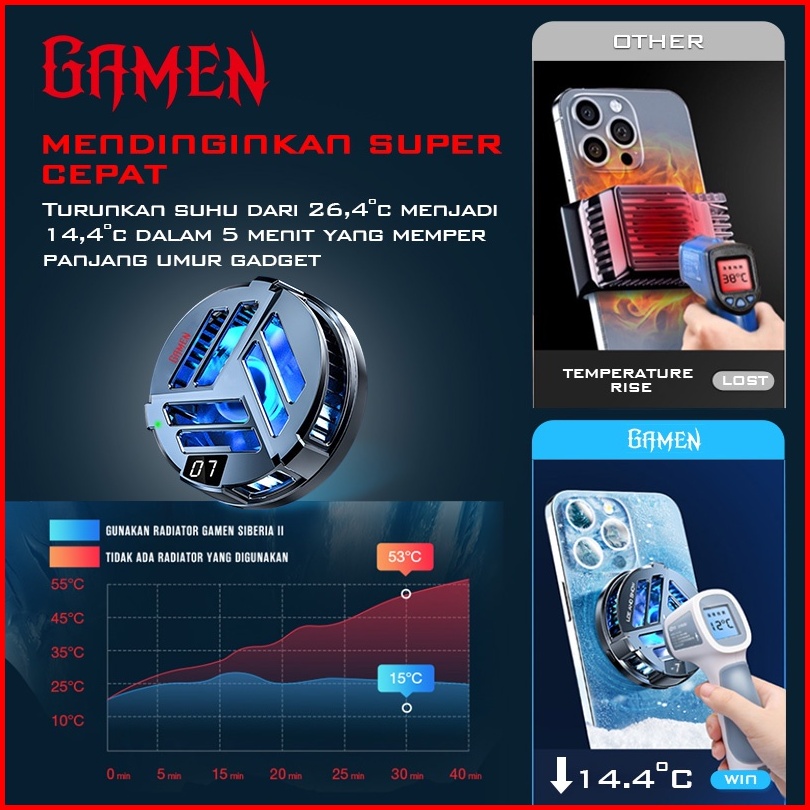 Gamen Fan Cooler Hp Magnetic Rgb Led Display Type-c Siberia Ii Pendingin Hp Untuk Game Heatsink Kipas Hp Gaming Cooler H