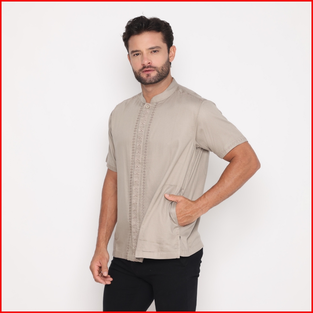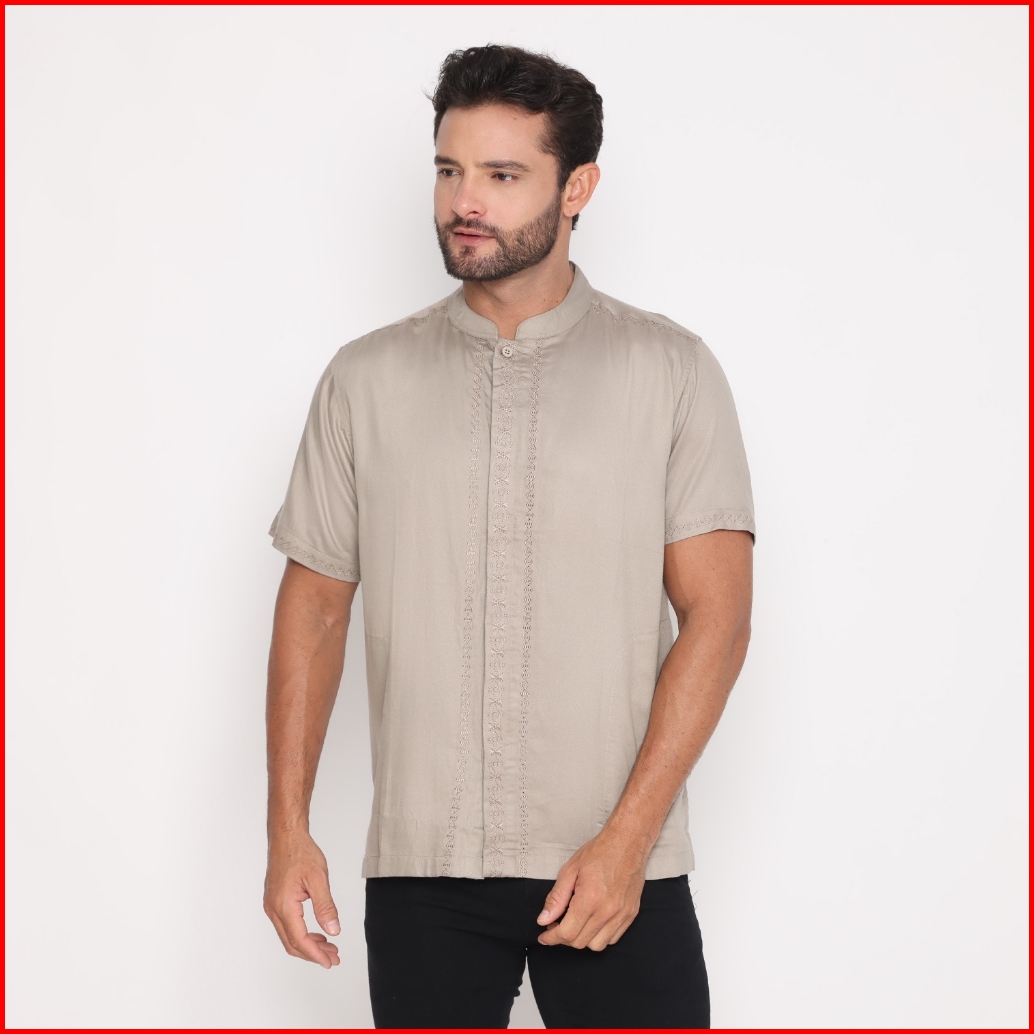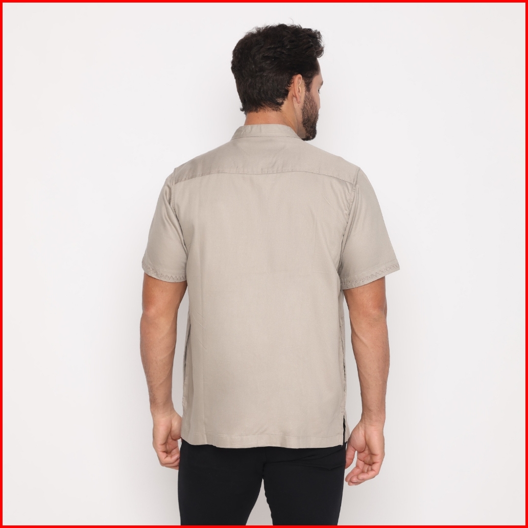 Fichino Kemeja Koko Pria Bordir Lengan Pendek Bandhu Coklat - 8586