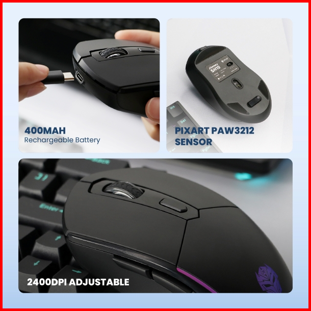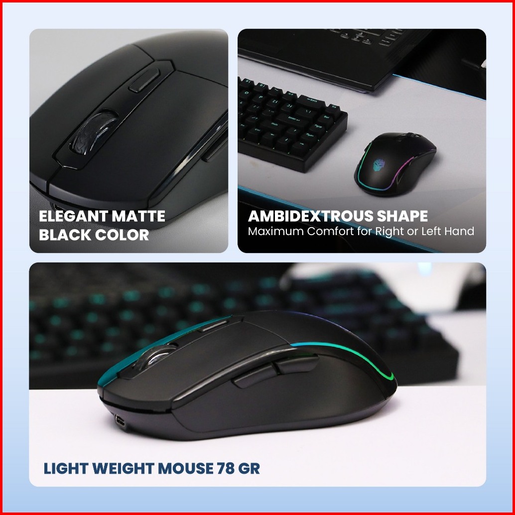 Exclusive Rexus Sh10 Mouse Gaming Wireless Rechargeable Baterai Rgb