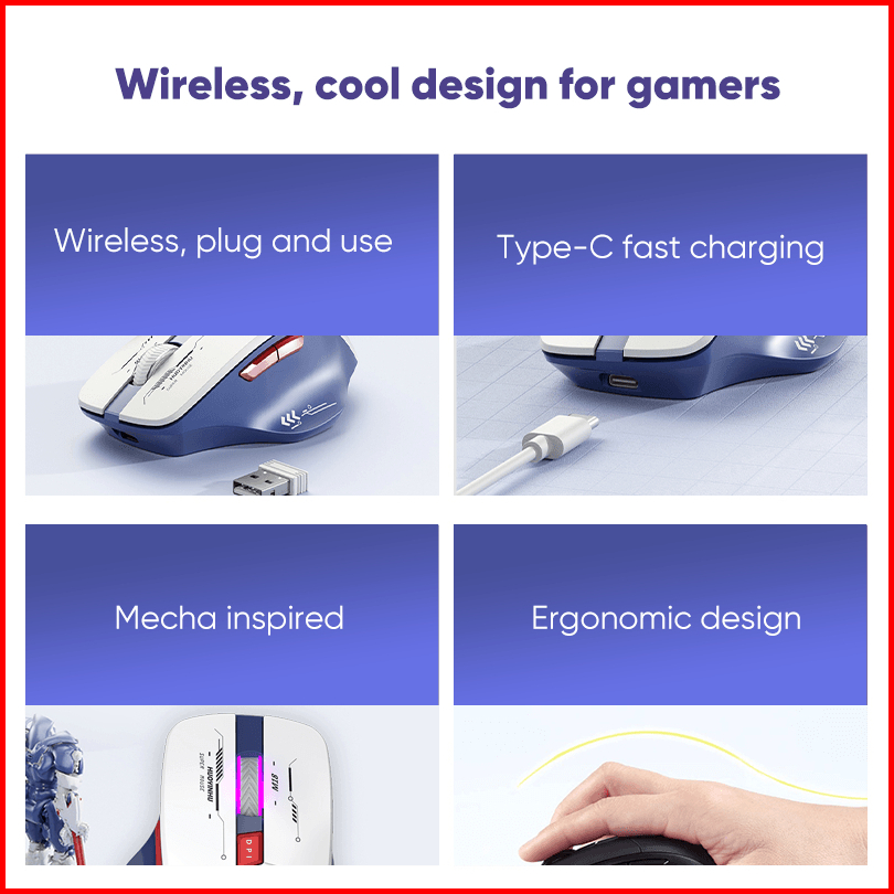 Mofii Mouse Wireless Gaming Rechargeable Baterai Type-c Fast Charging 1600dpi Rgb Light P6