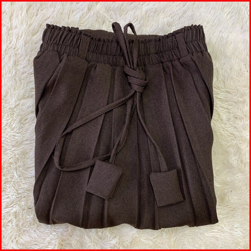 Rok Plisket Premium Import Kantor Kerja Wanita Bahan Semi Woll Pinggang Full Karet