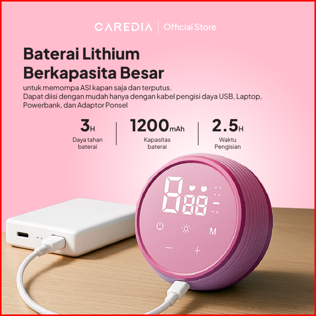 Caredia Pompa Asi Elektrik Tanpa Kabel Otomatis 1200mah Pompa Asi Tanpa Portabel Rasa Sakit Pumping Asi Efisien Fungsi L