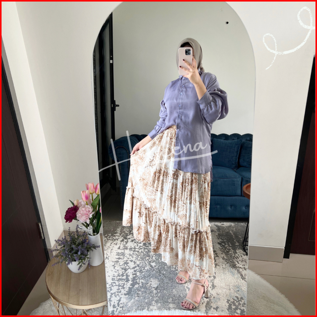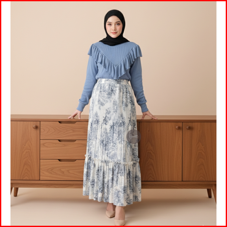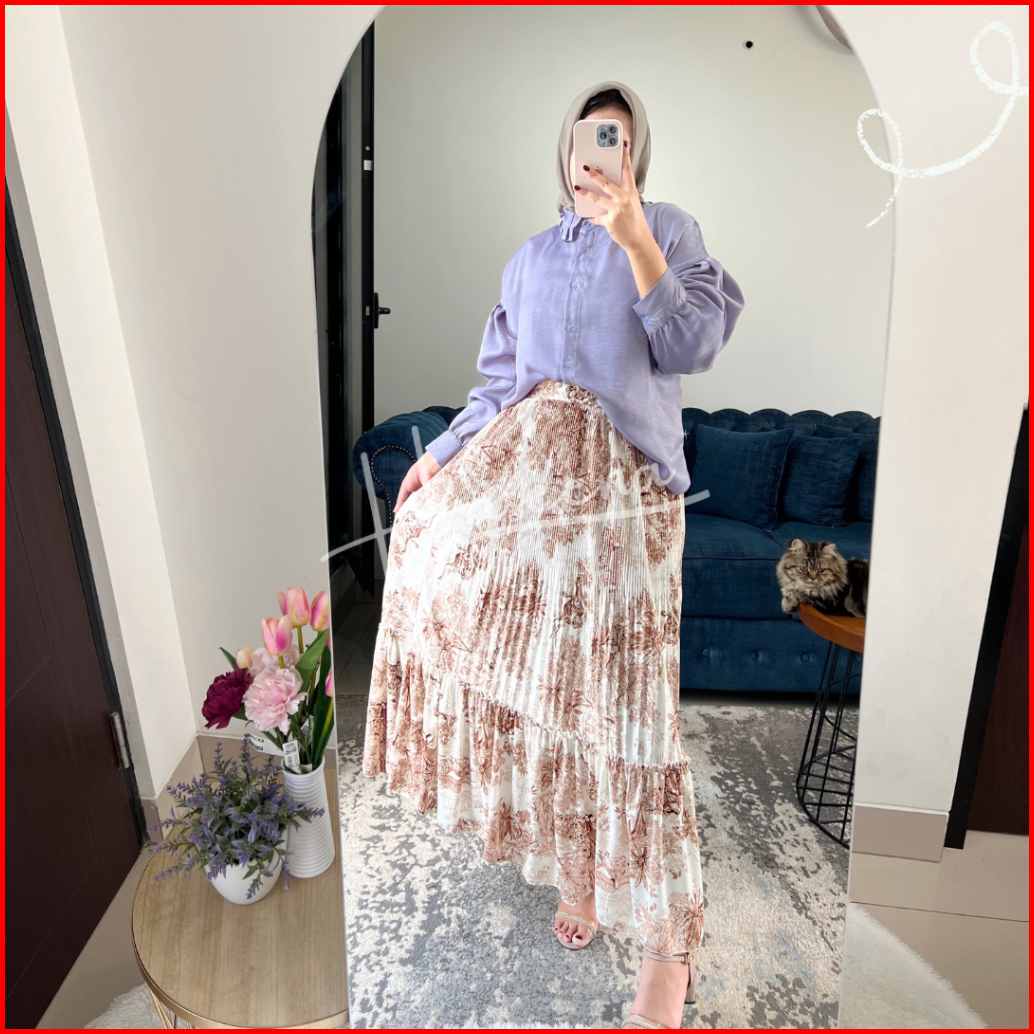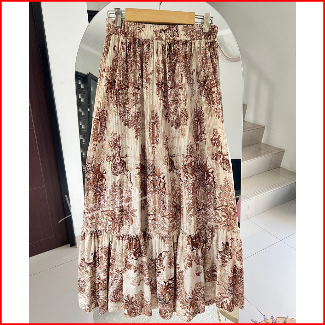 Haseena Rok Plisket Mietaa Rempel Susun Motif Klasik Prada Skirt Ruffle Anti Nerawang