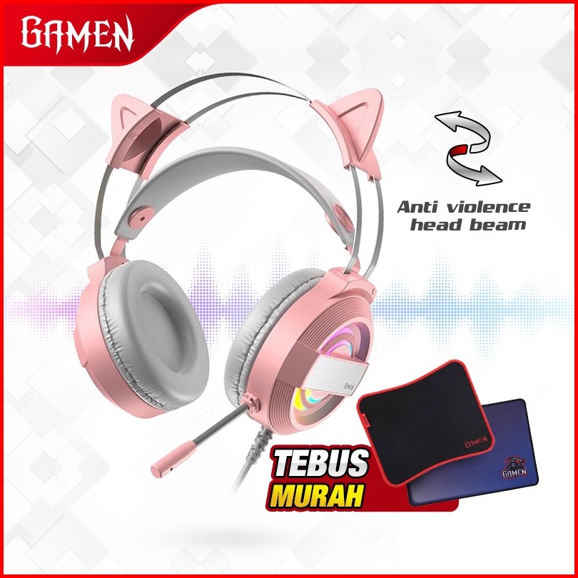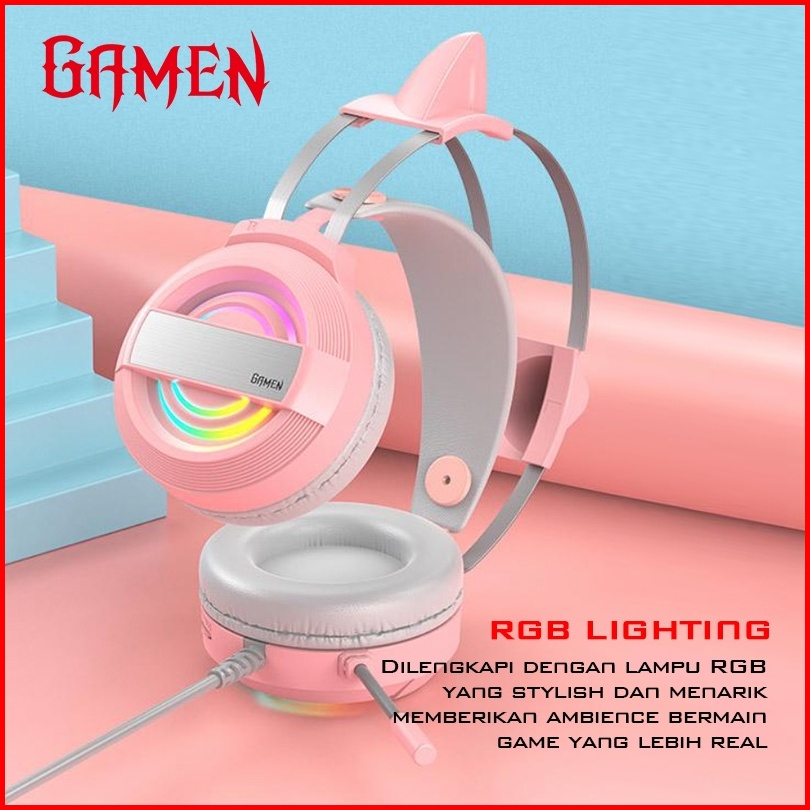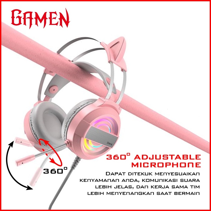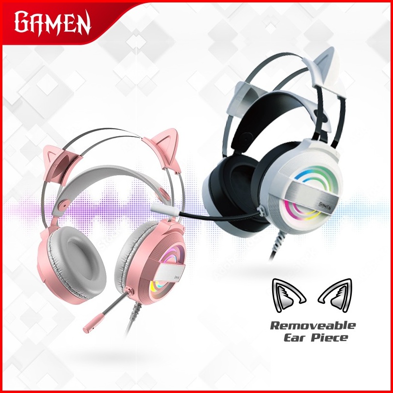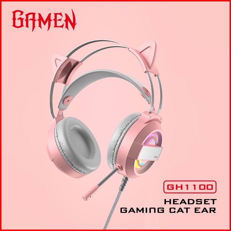 Gamen Headset Gaming Kabel Usb Removeable Cat Ear Gh1100 Headphone Rgb Light Ergonomic Design 360 Adjustable Microphone