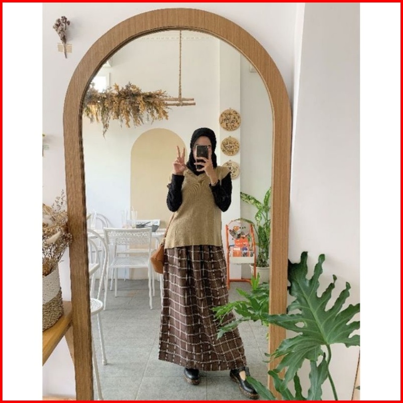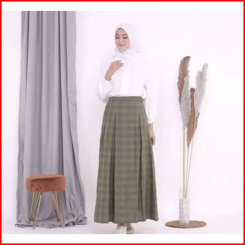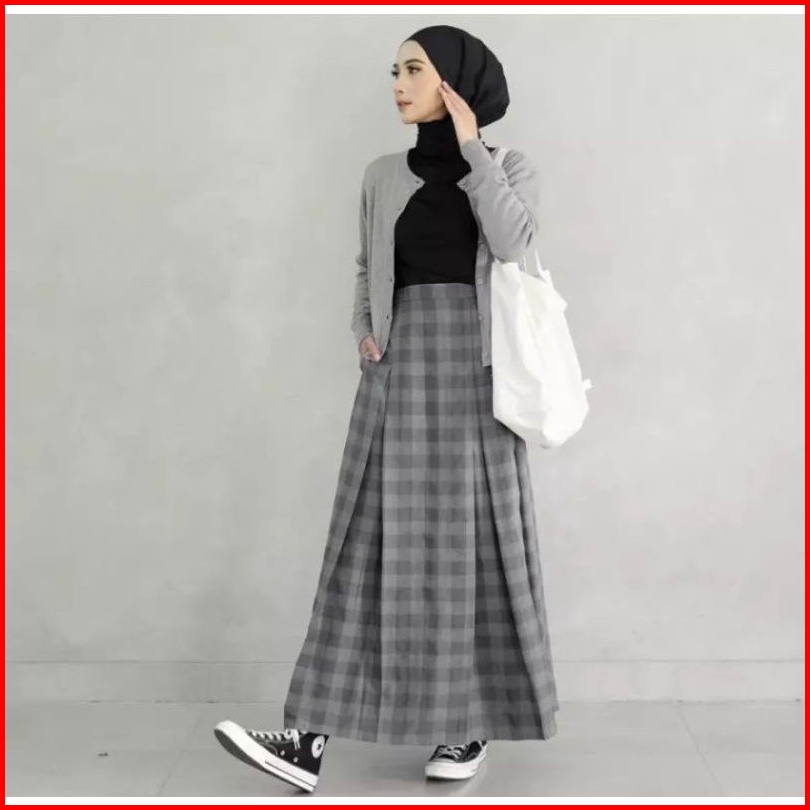Rok Tartan Kotak Muslimah Panjang Wol Elastis