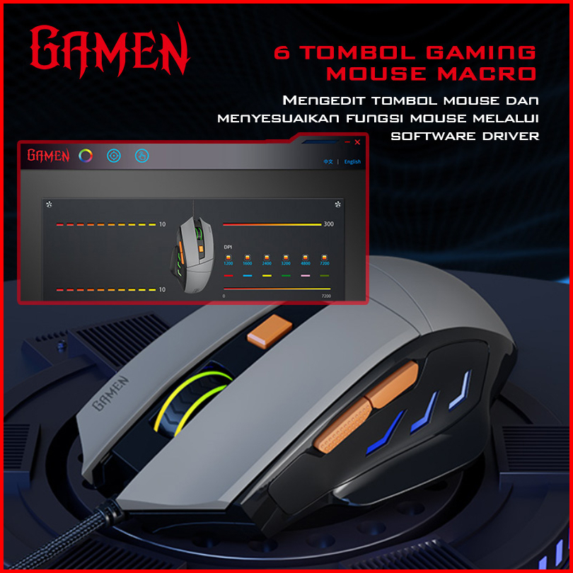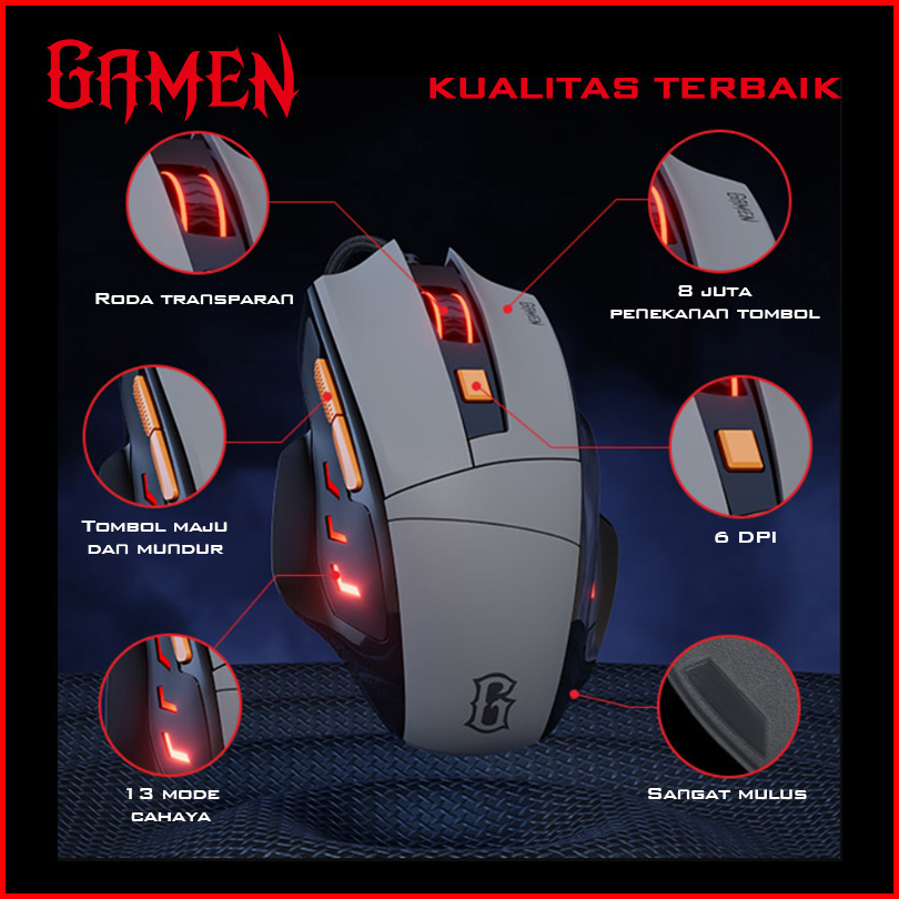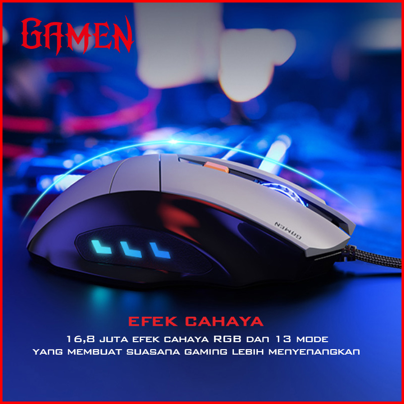 Gamen Mouse Gaming Kabel 7200 Dpi 6 Level Dpi 13 Mode Rgb 6 Macro Button Gm300 For Laptop Pc Original - Garansi 1 Tahun