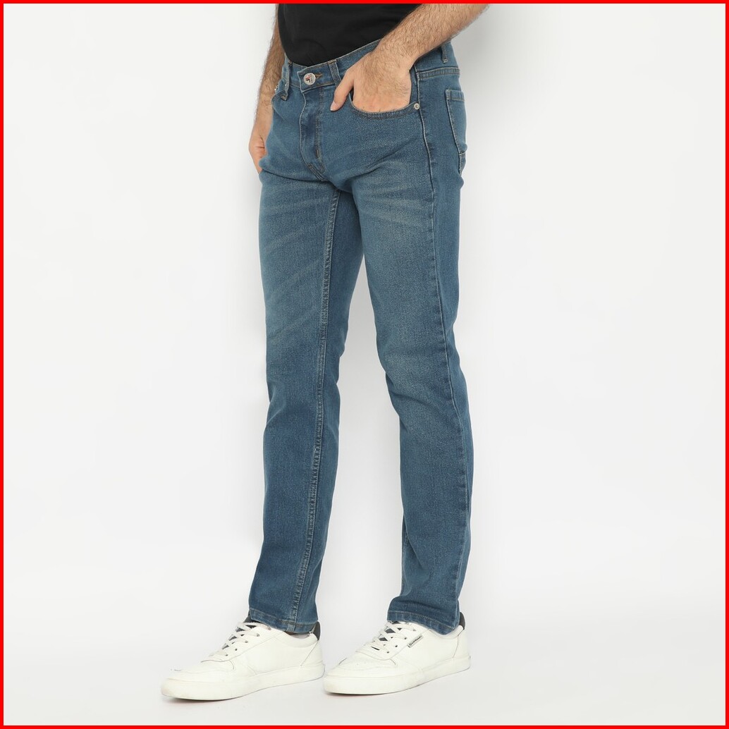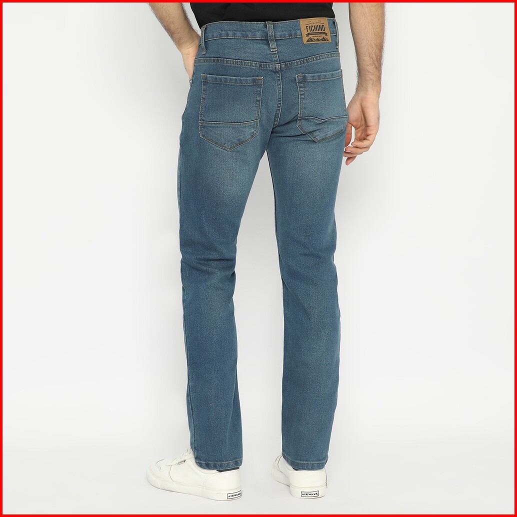 Fichino Celana Jeans Panjang Pria Torquoise Blue Whisker Boston Series Js - 003