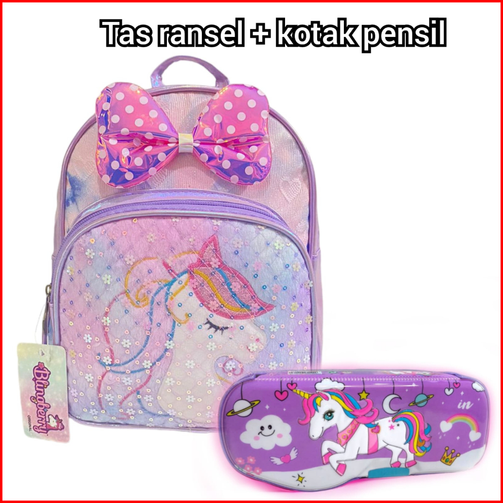 Blingberry Tas Ransel Anak Paud Tk Unicorn Flower Backpack Jalan Anak Perempaun Unicorn Flower Motif Kekinian Keren Berk