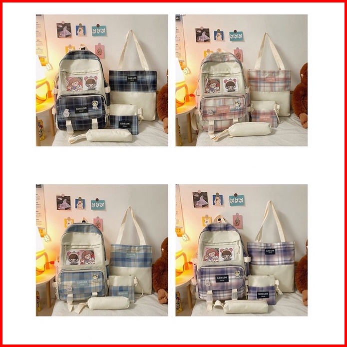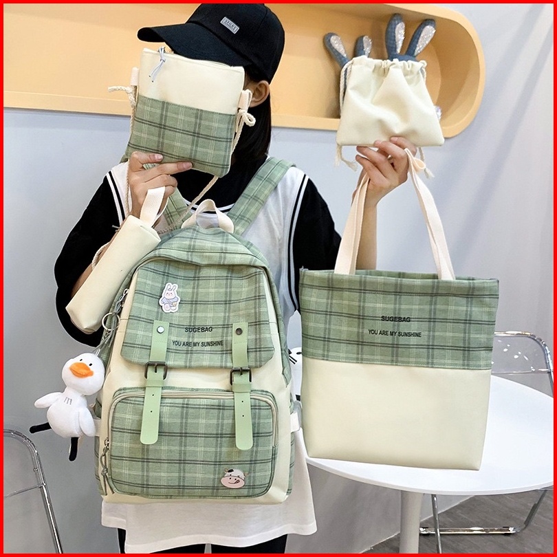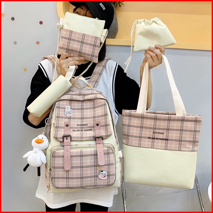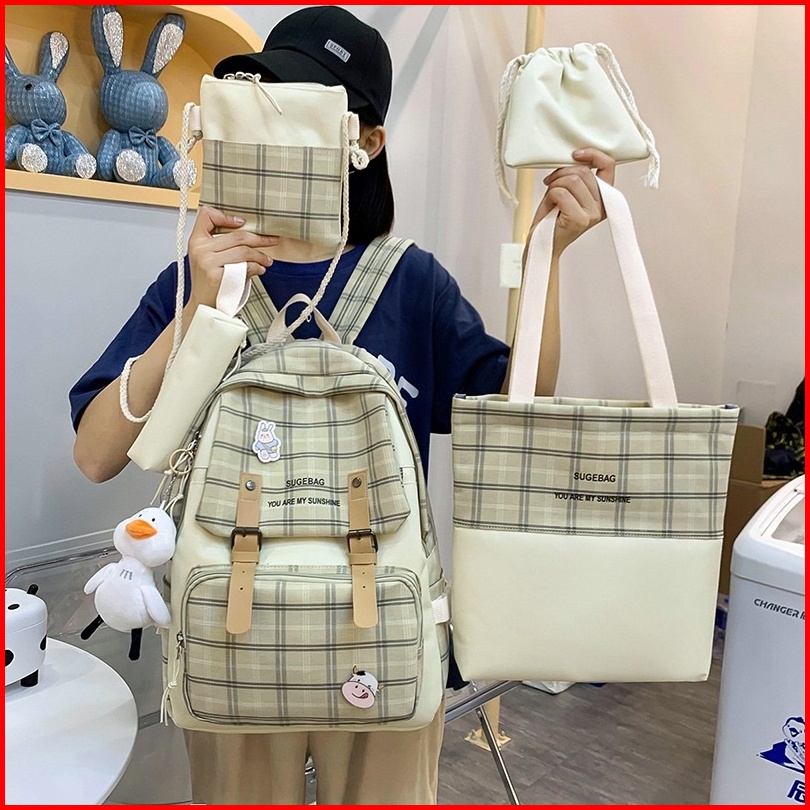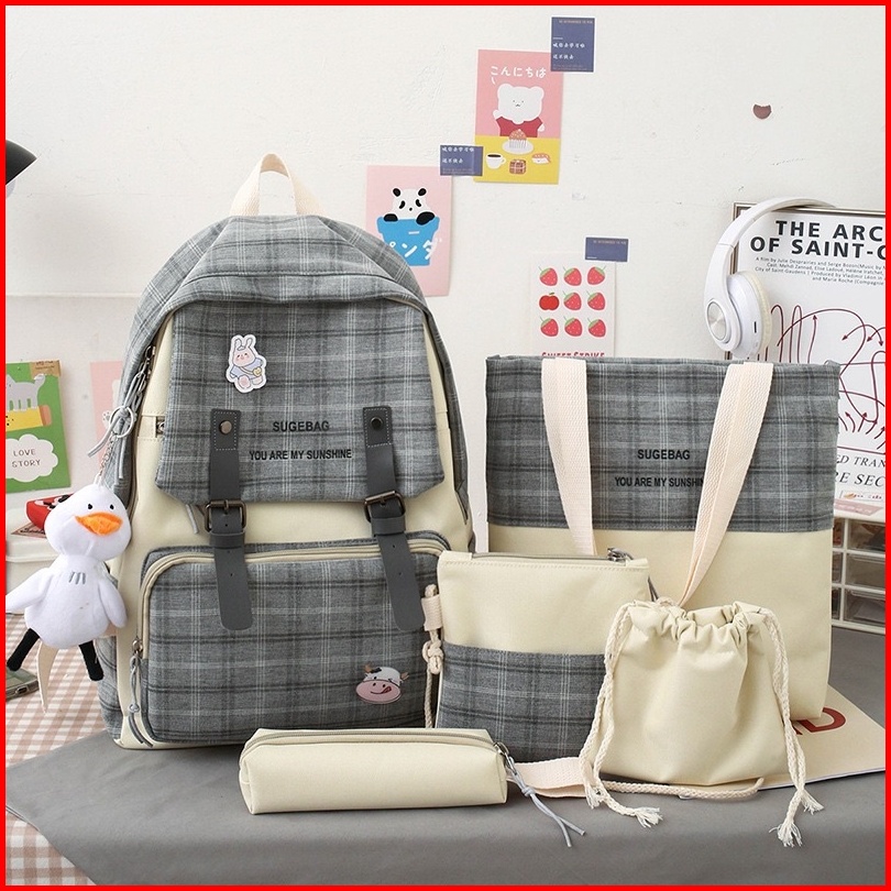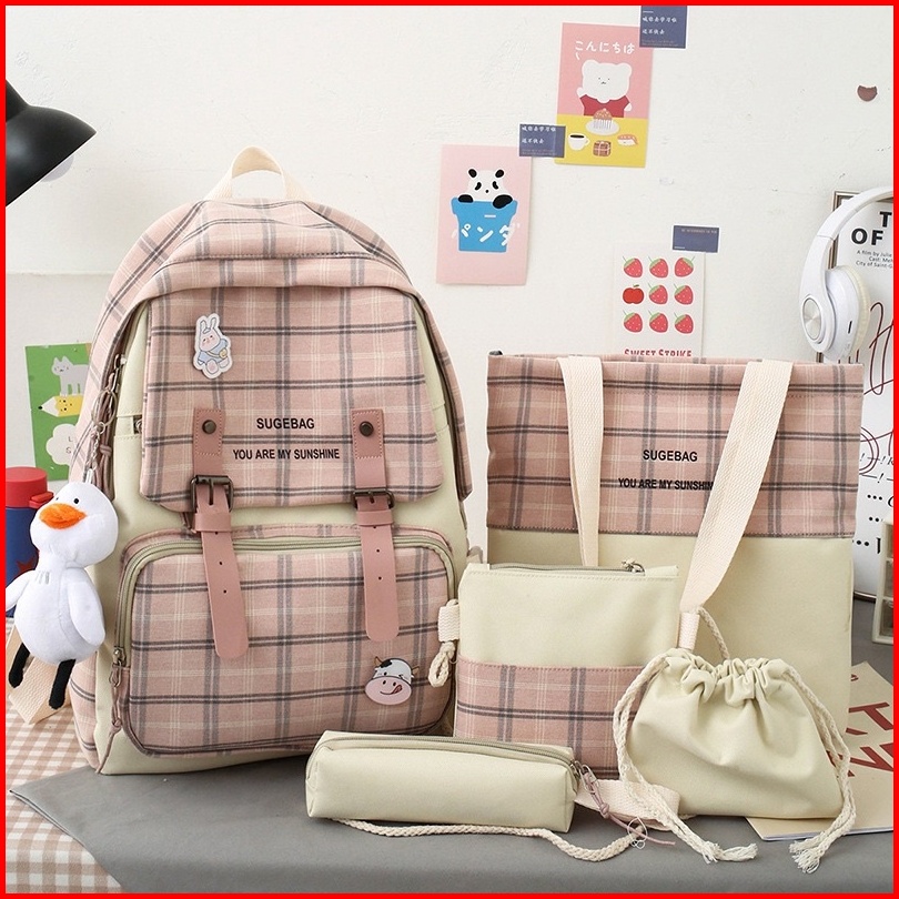 Tas Ransel Anak Sekolah Wanita Impor Set 5 In 1 Original Backpack Fashion Korea Tas Punggung Sd Smp Sma Perempuan Terbar