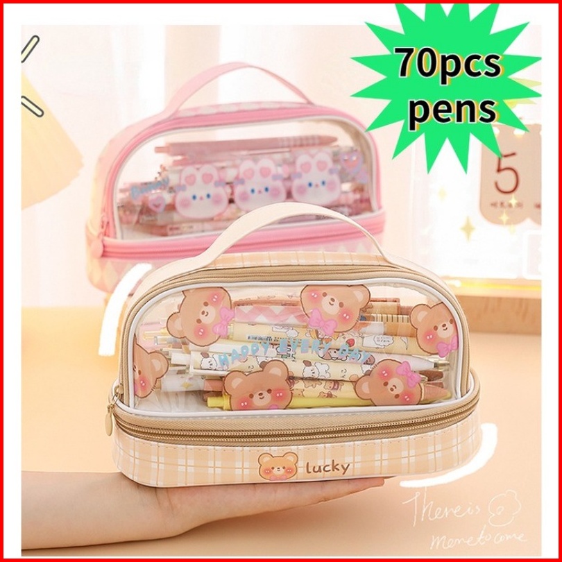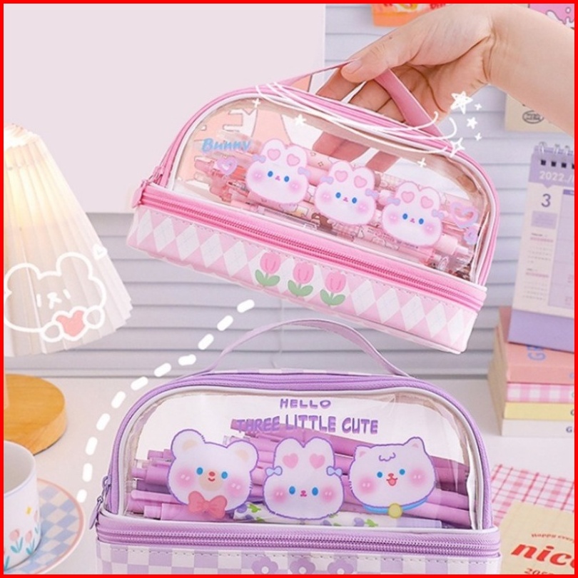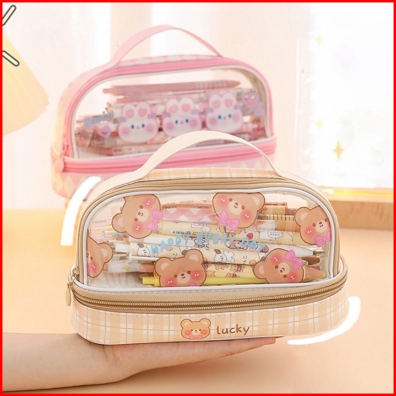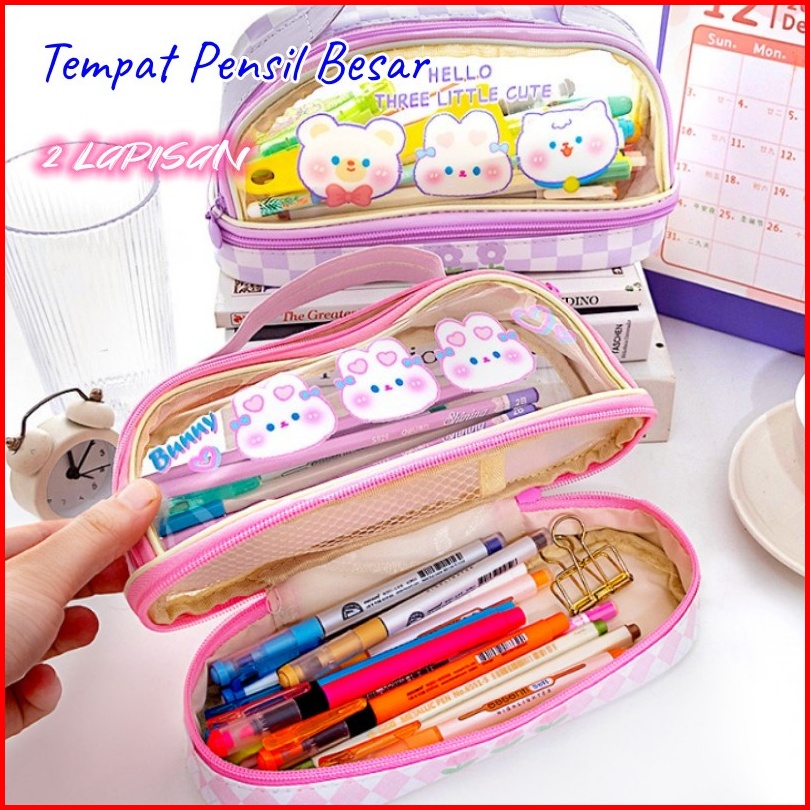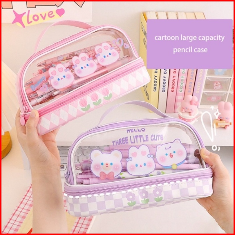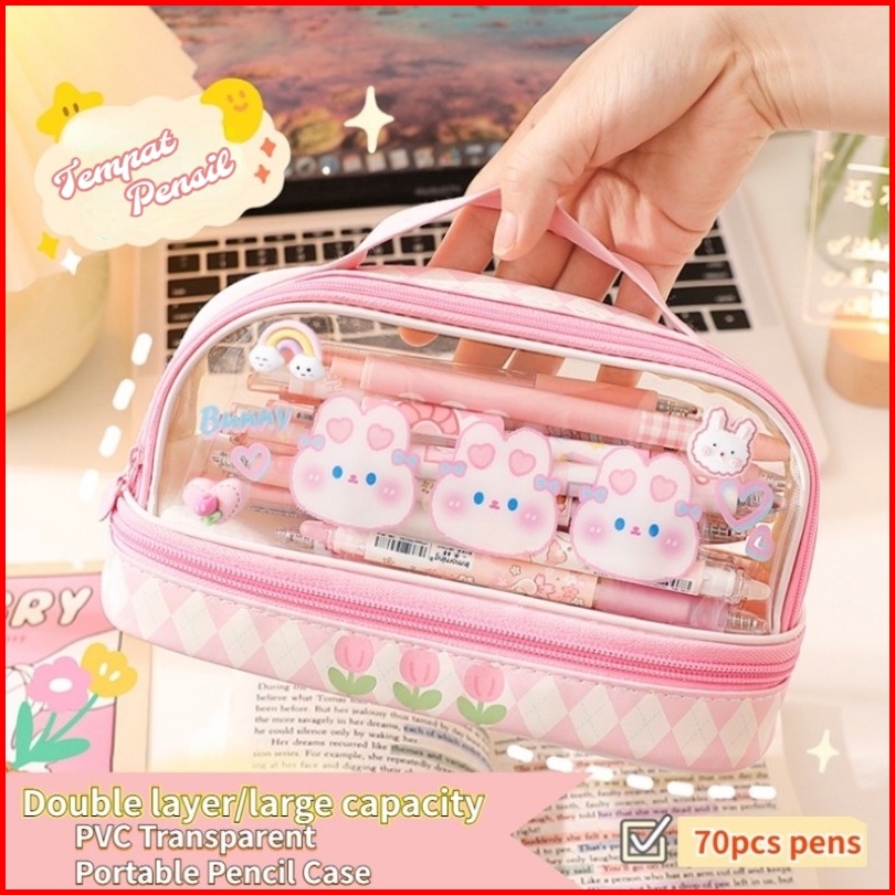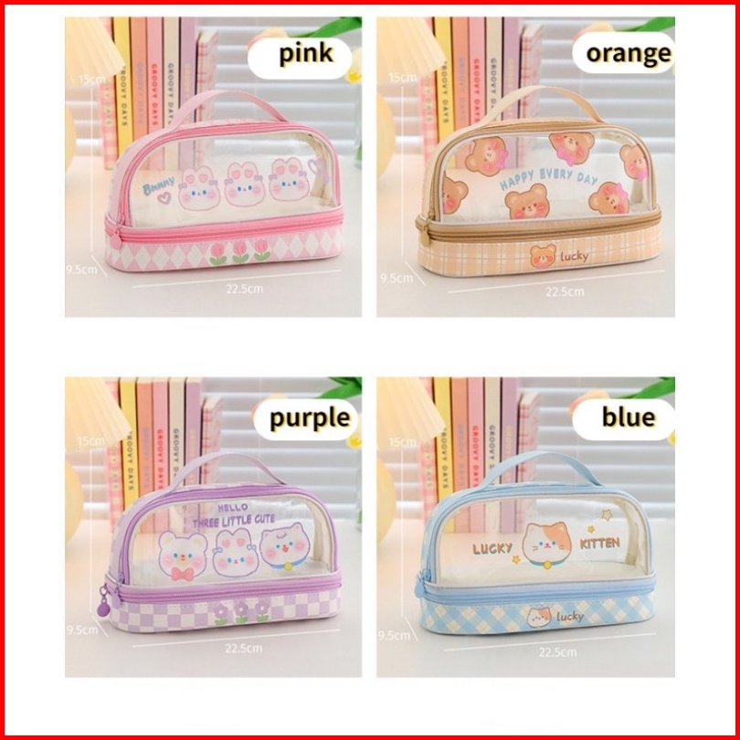 Tempat Pensil Besar Transparan Pvc Pencil Case Tas Pensil Murid Lucu Kotak Pensil Anak Esthetis