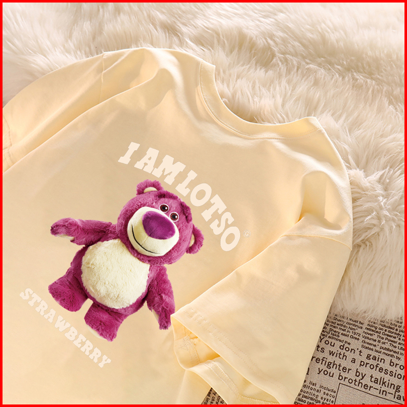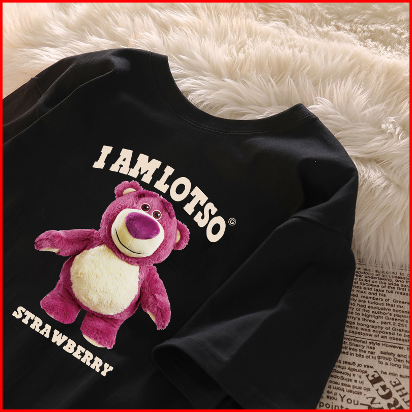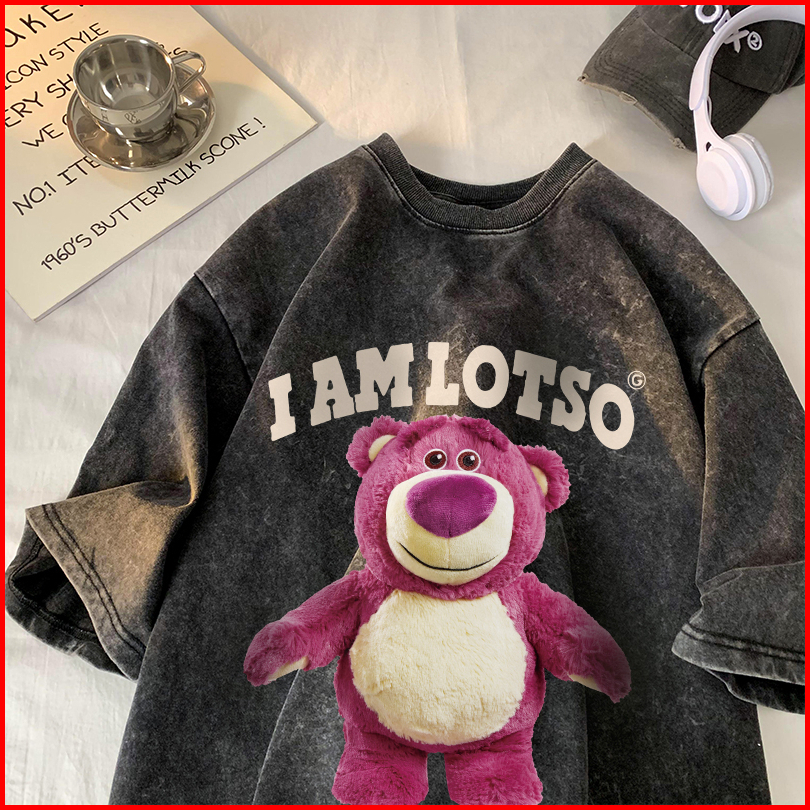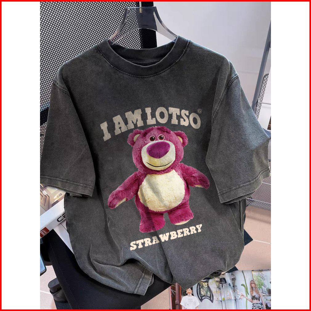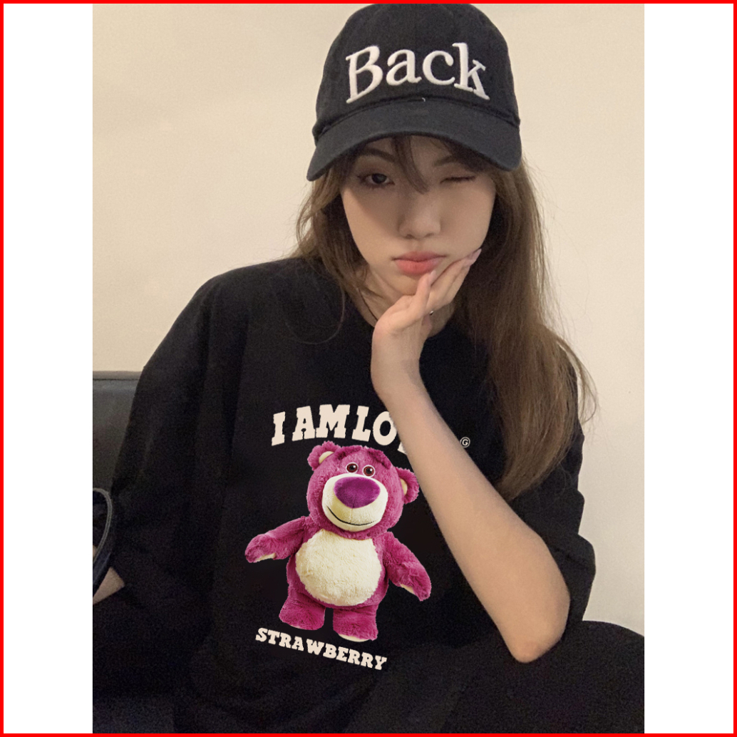 Sezo. Baju Wanita Hitam Washed Lotso Toy Story Street Style Kaos Oversize Wanita Korean Lengan Pendek Baju Atasan Wanita