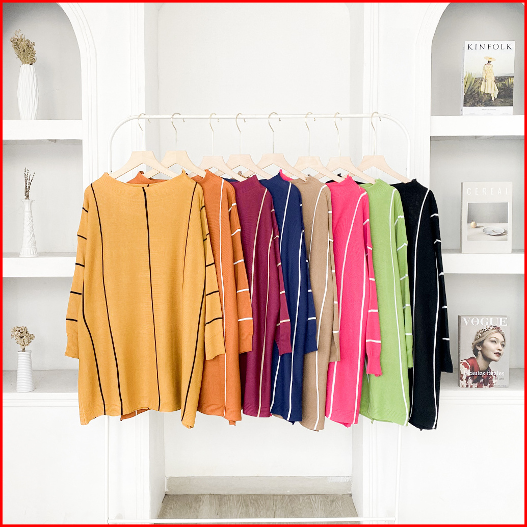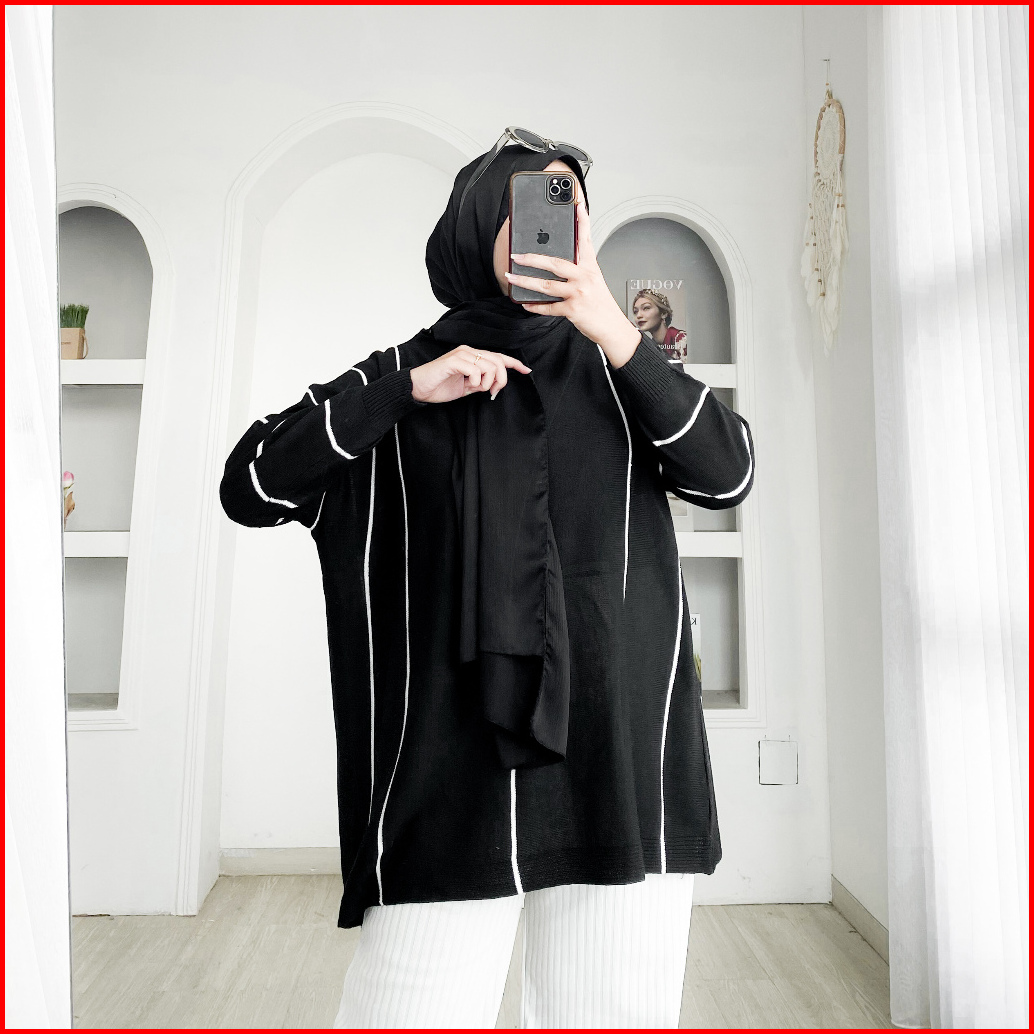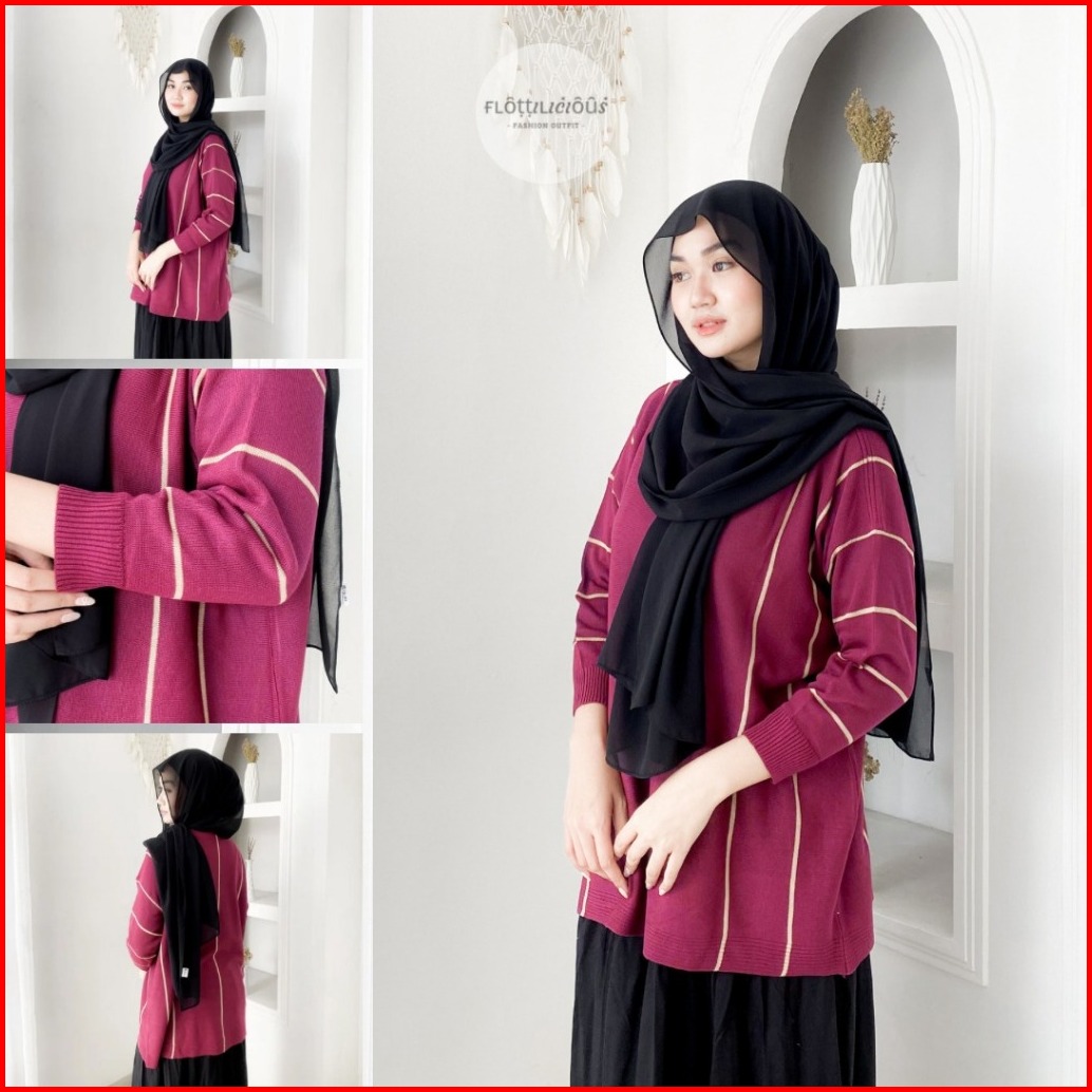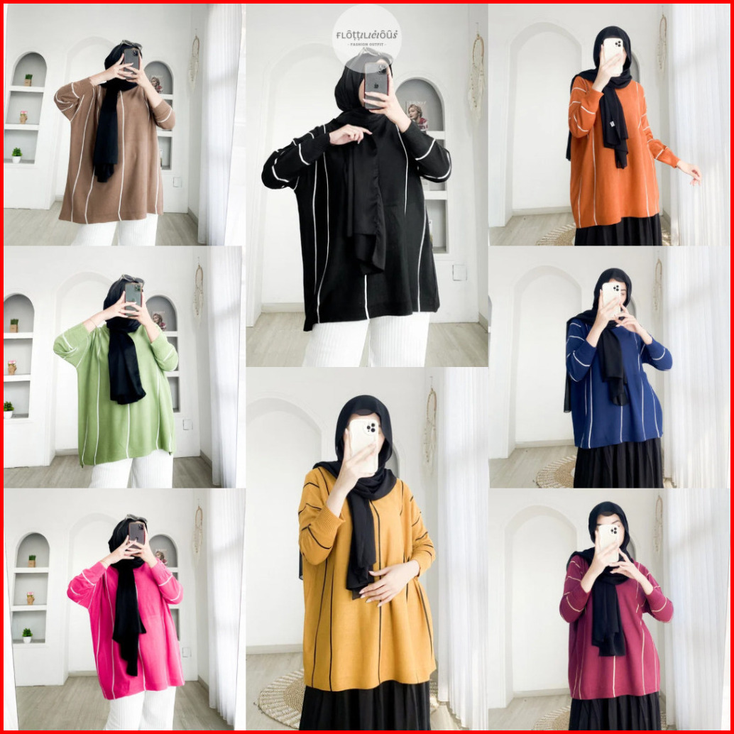Kayle Top Knit Oversize - Flottilicious Atasan Wanita Baju Jumbo Oversize Big Size Bahan Knit Rajut Blouse Murah Hijab O