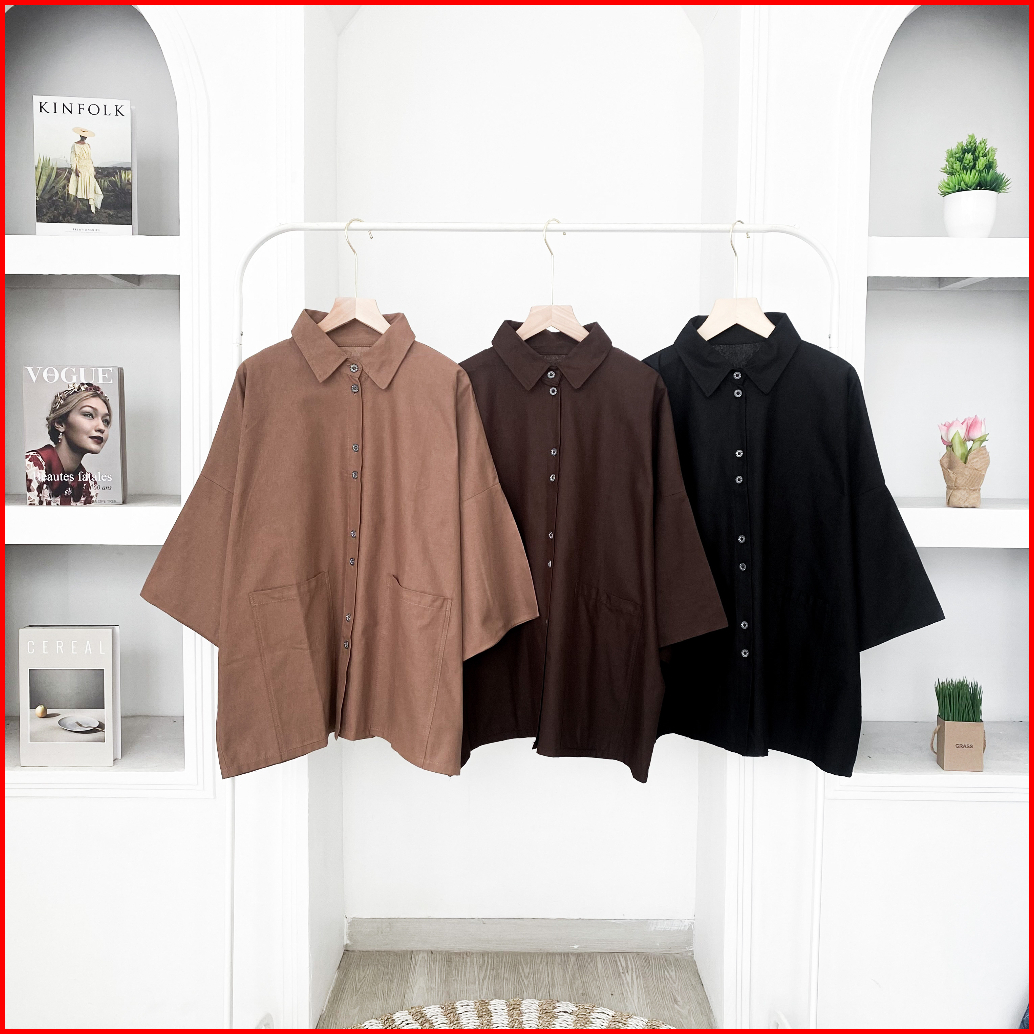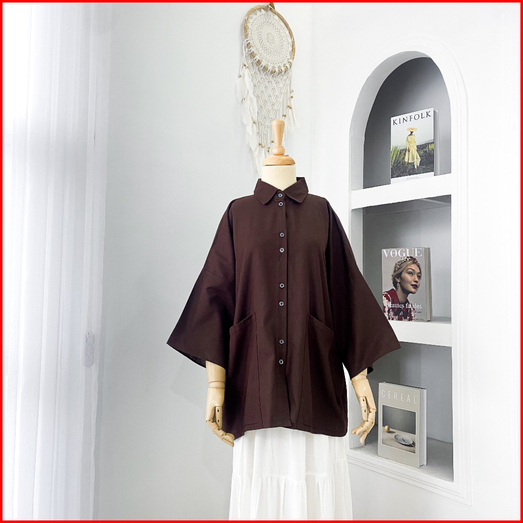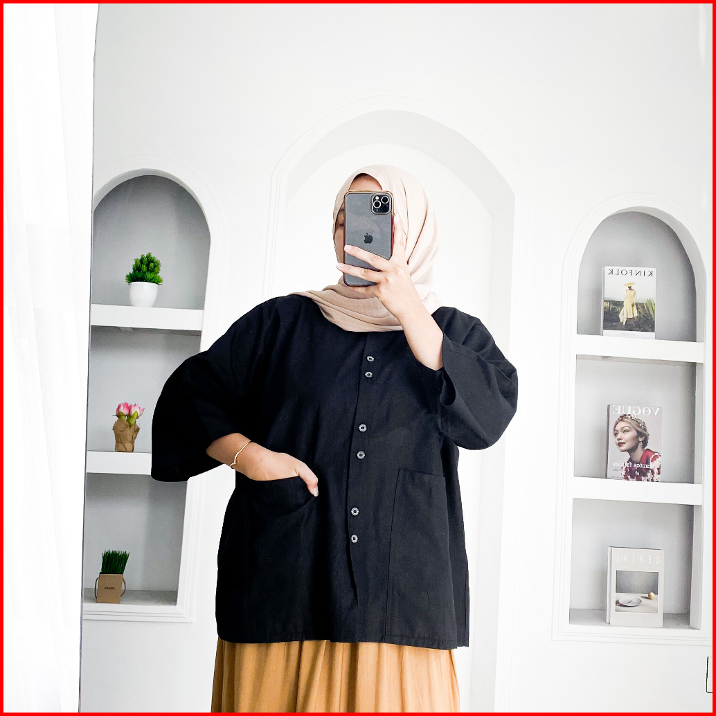 Safa Top - Flottilicious Kemeja Linen Basic Lengan Panjang Kemeja Oversize Linen Wanita