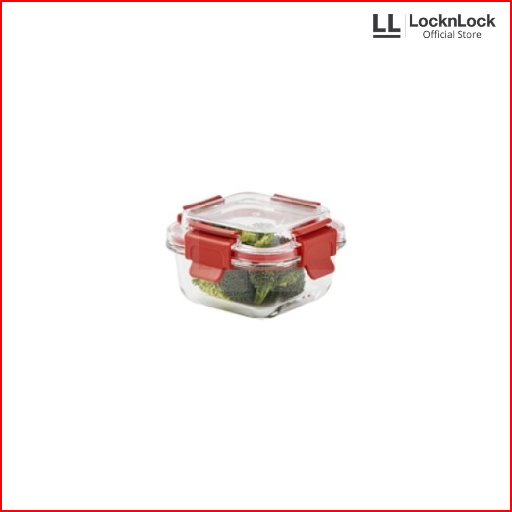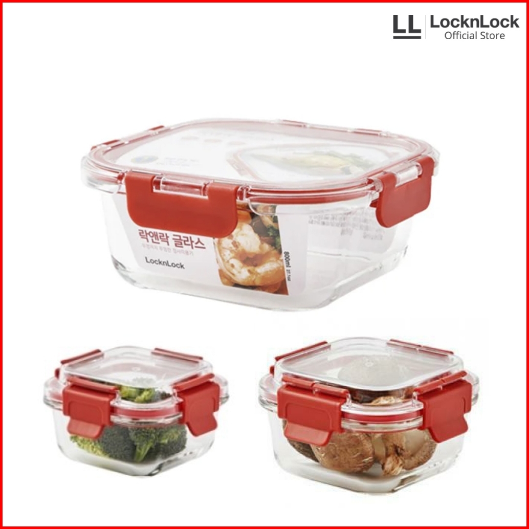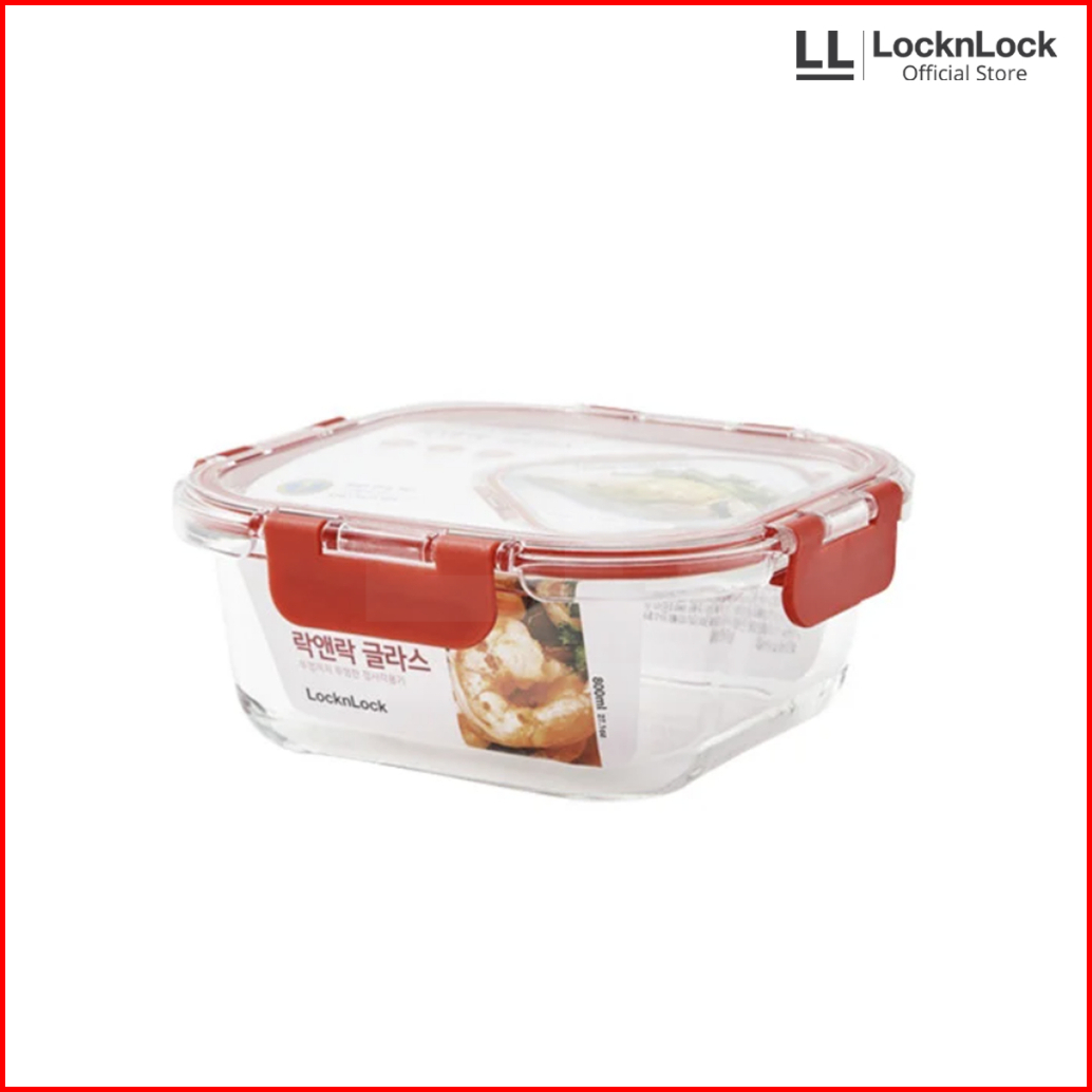 Locknlock Tritan Cap Oven Glass Wadah Makanan Kedap Air Dan Udara - Square Red Series