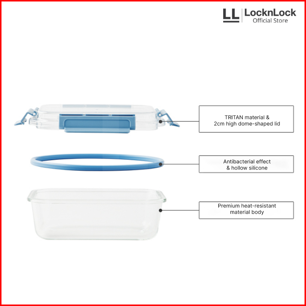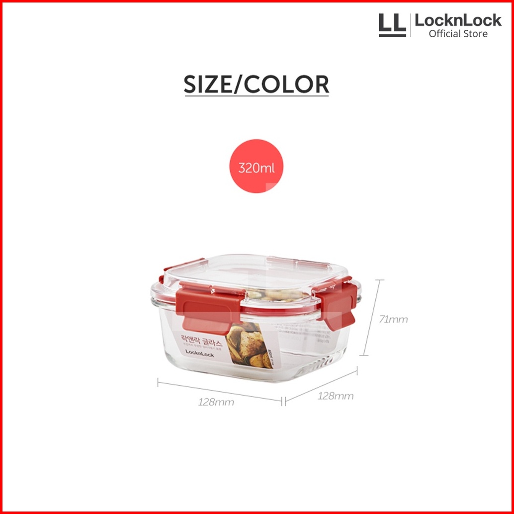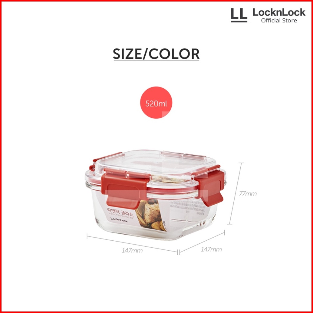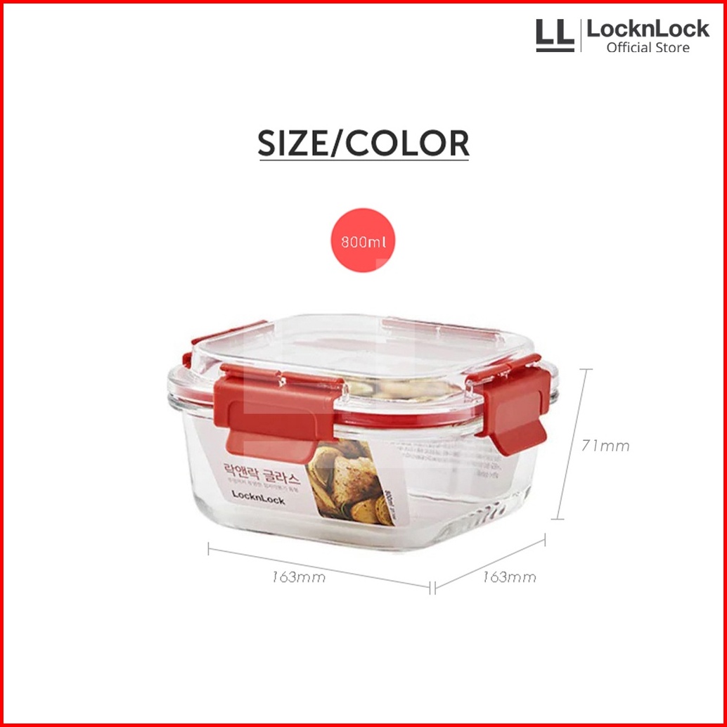 Locknlock Tritan Cap Oven Glass Wadah Makanan Kedap Air Dan Udara - Square Red Series