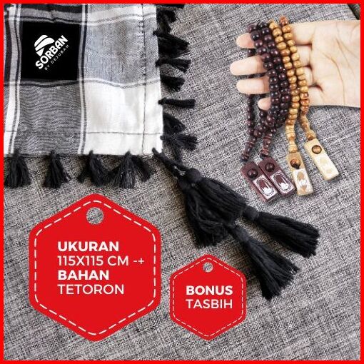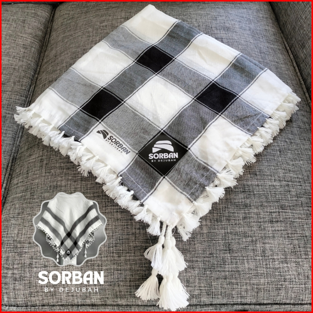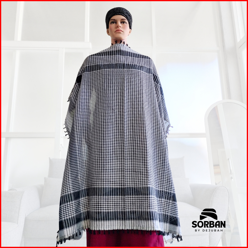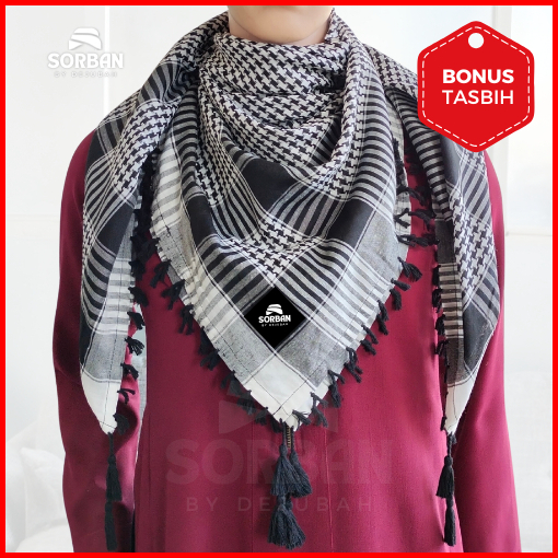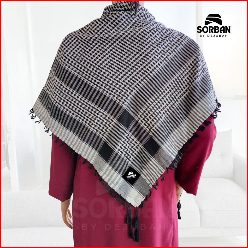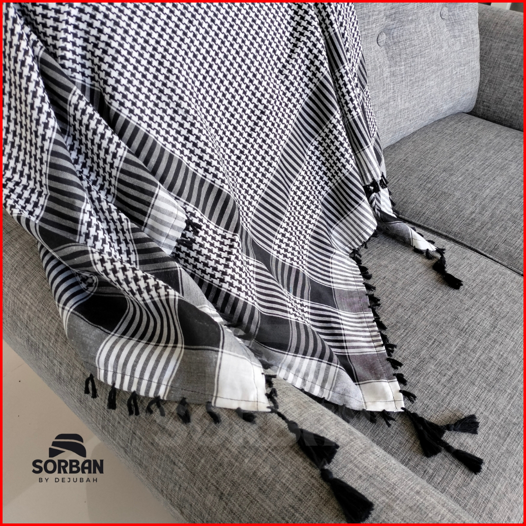 Dejubah - Sorban Tactical Timbul Dewasa Anak Laki Laki Arab Palestin Warna Hitam Putih