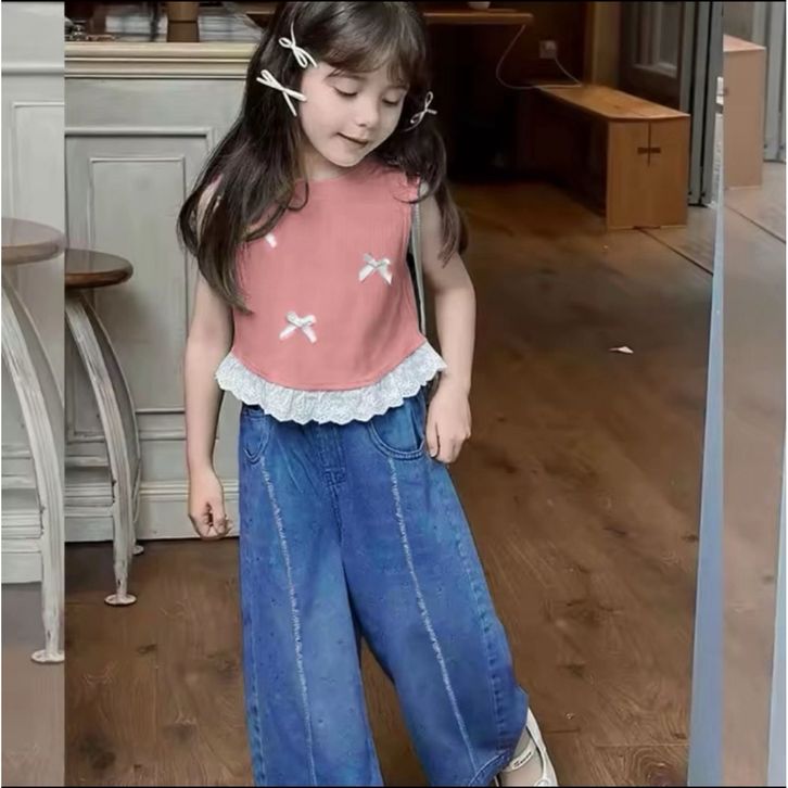[Star] setelan anak perempuan baju dan celana panjang denim anak 1-5 tahun setelan anak perempuan korea style baju anak