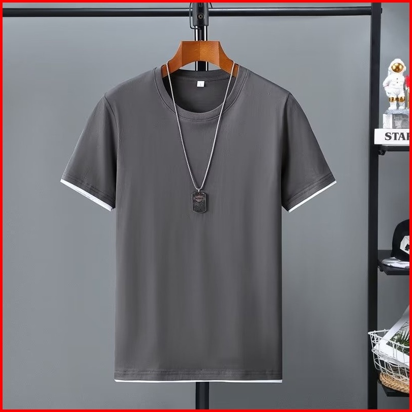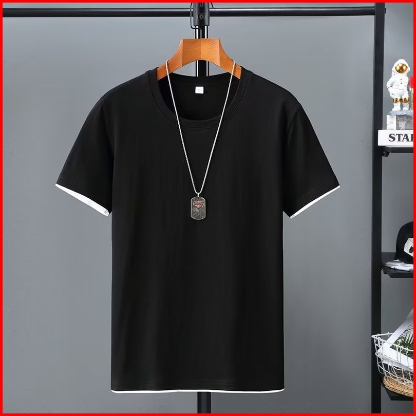 100 Import Premium Katun Kaos Pria Fake Two Pieces Ins Fashion Korea T-shirt