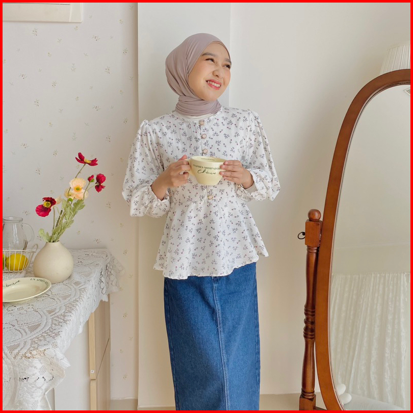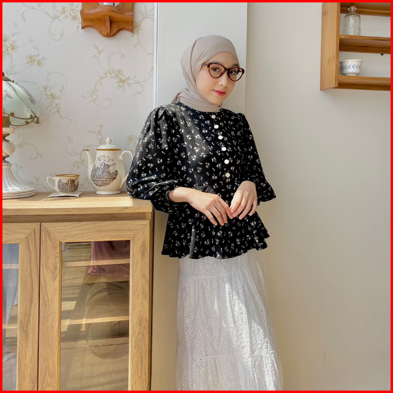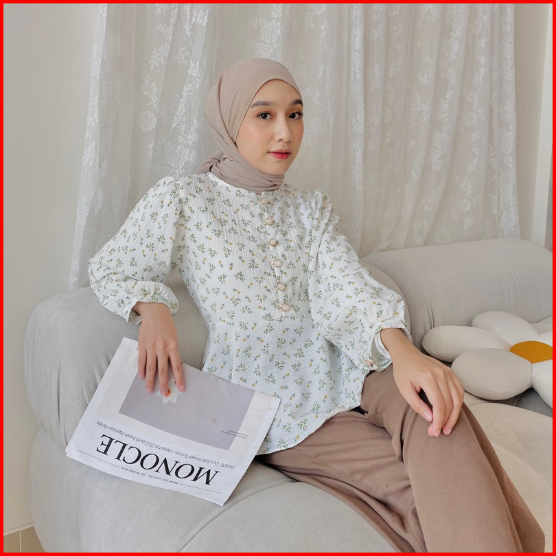 Hana Blouse Blouse Floral Atasan Wanita Korean Style