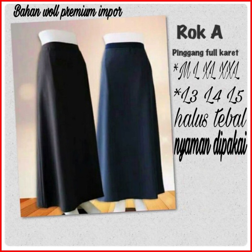 Rok A-line Rok Kantor Murah Kerja Jumbo Woll Premium Impor Melar Halus Adem