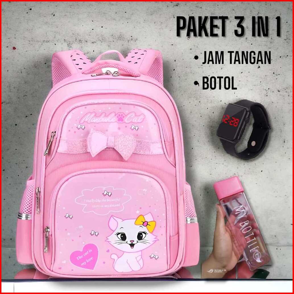 Tas Ransel Anak Sekolah Perempuan Tk Sd Motif Manbuke Cat