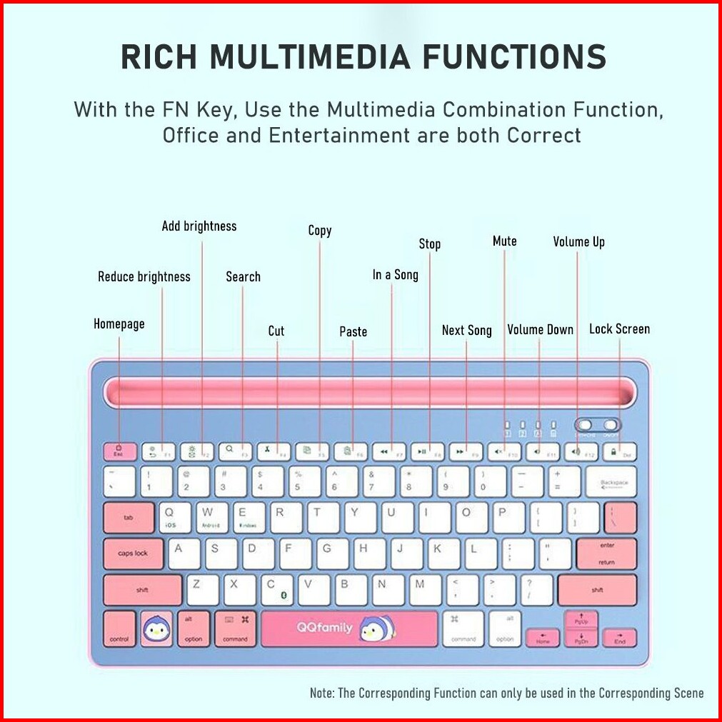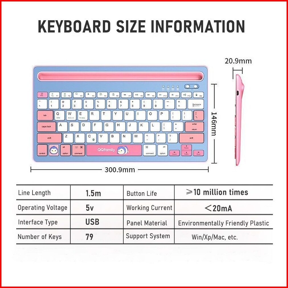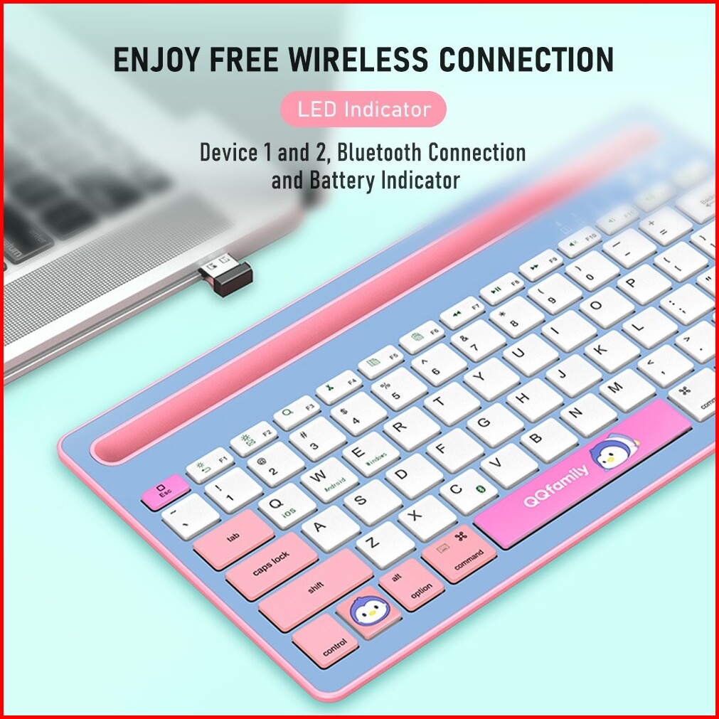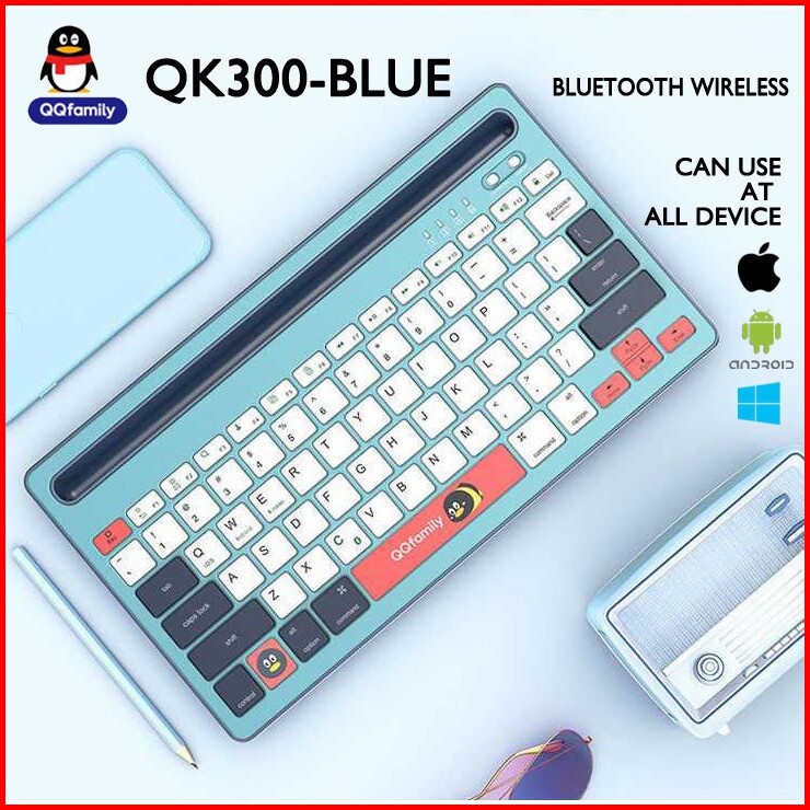 Keyboard Stylish Qq Fashion Qk300-blue - Bluetooth Wireless - Rechargeable Li Battery - Dual Channel