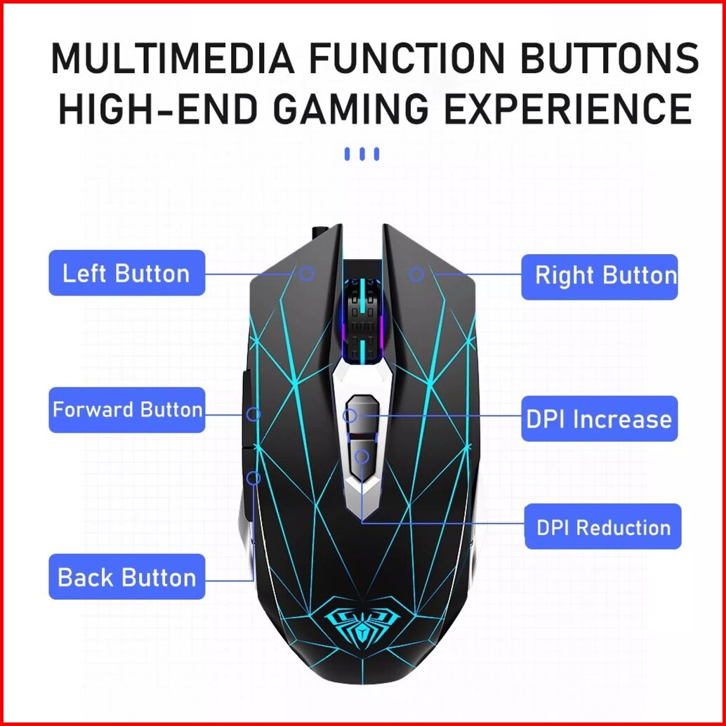 Mouse Gaming Aula S50 Macro Programmable - Rgb Colorful Lightning - 4 Gear 2400dpi 7 Buttons