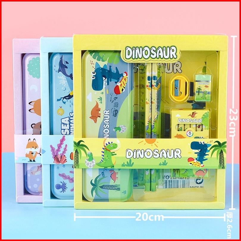Alat Tulis Set Paket Komplit 7 In 1 Stationery Complete Lengkap Kotak Pensil Anak Souvenir Hadiah Kado Sekolah Karakter