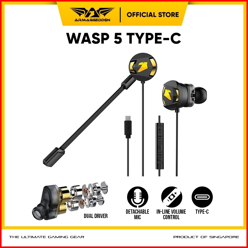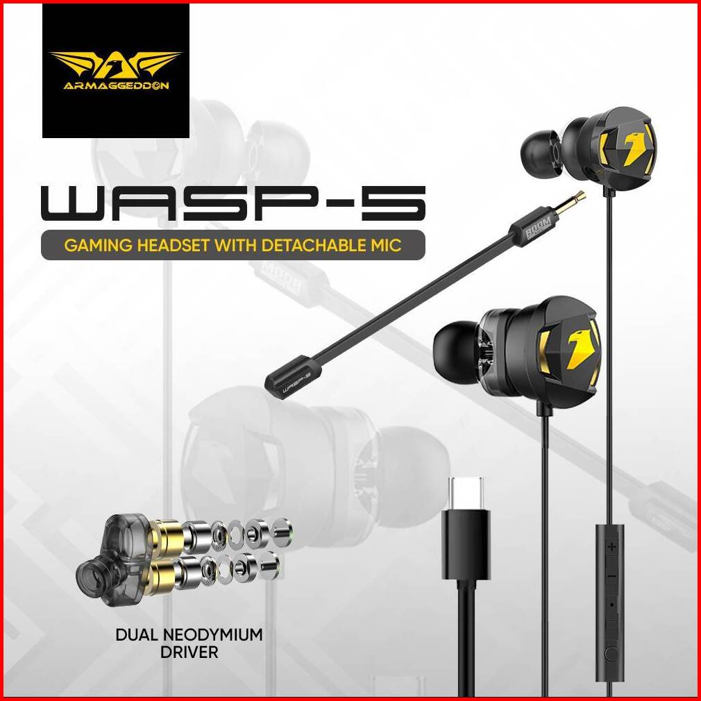 Earphone Gaming Armaggeddon Headset Mobile Gaming Wasp 5 Dual Mic Driver Ultra Bass