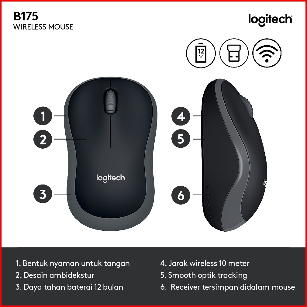 Logitech B175 Mouse Wireless Untuk Windows Mac Linux Dan Chromeos