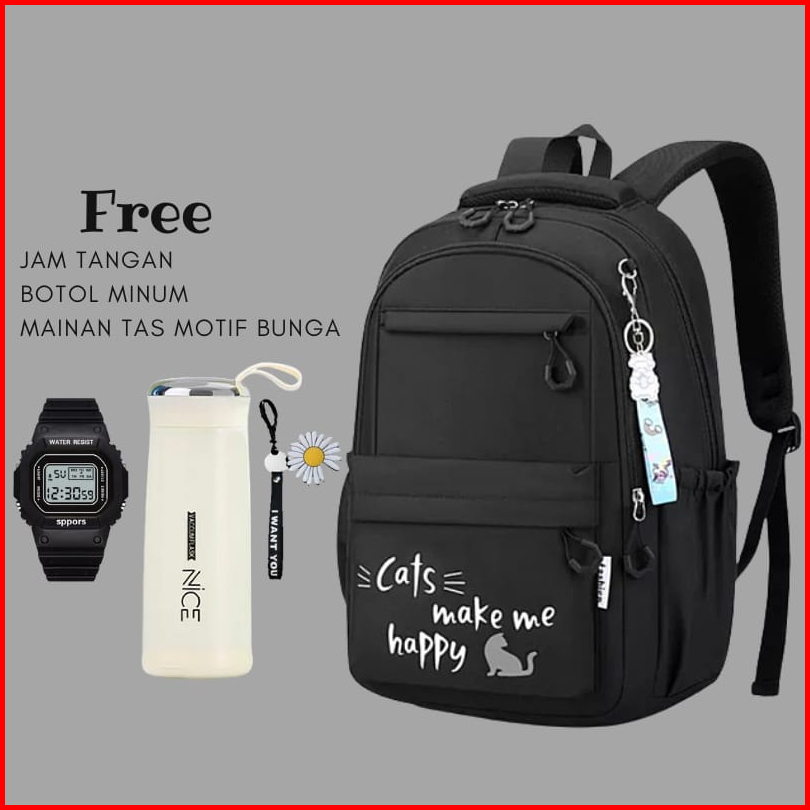 Tas Ransel Anak Sekolah Free Botol Minum Jam Tangan Dan Gantungan Lucu 4 In 1