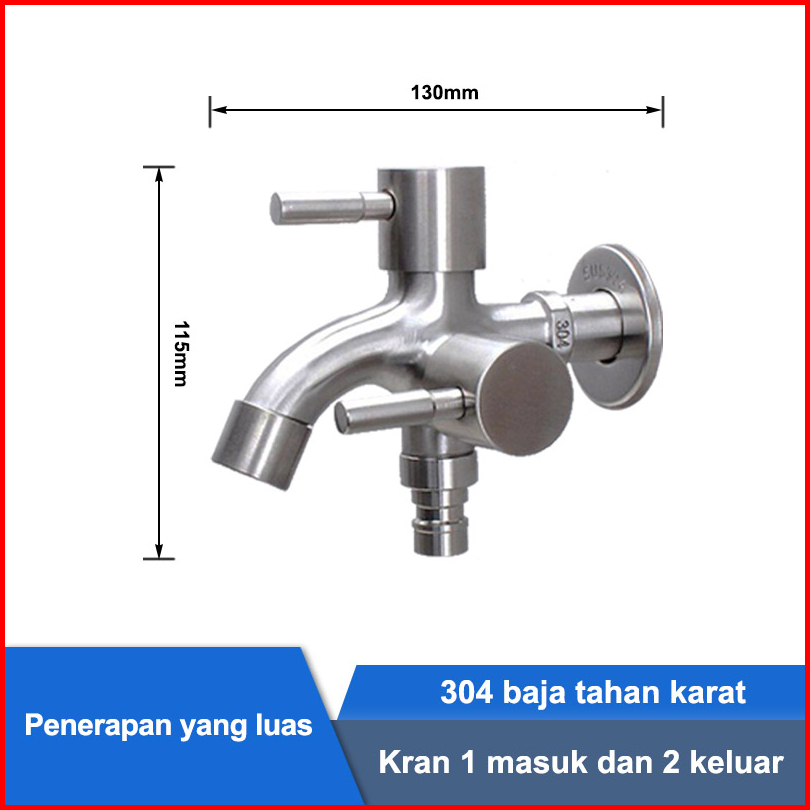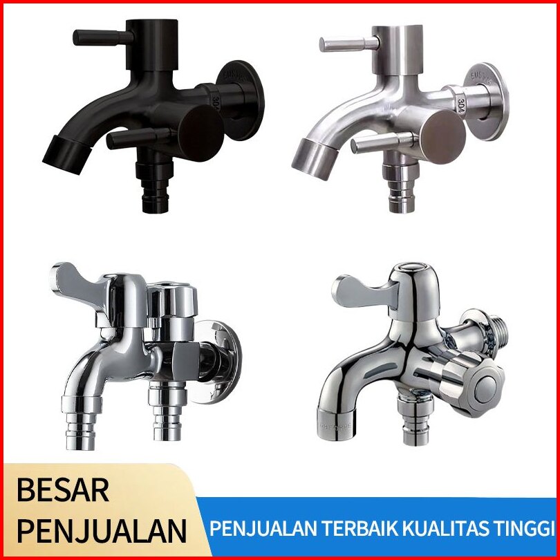 Sus 304 Keran Cabang Keran Outlet Ganda Keran Dinding Dari Baja Tahan Karat Kamar Mandi Tersedia