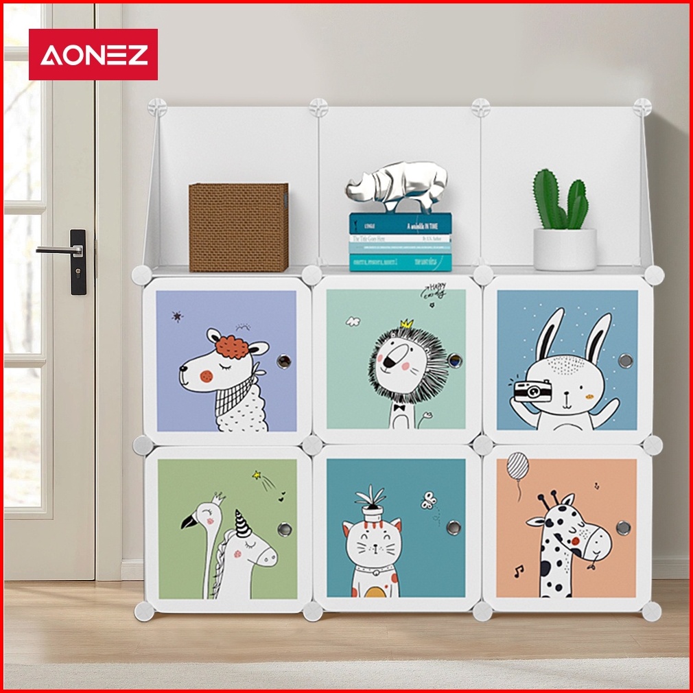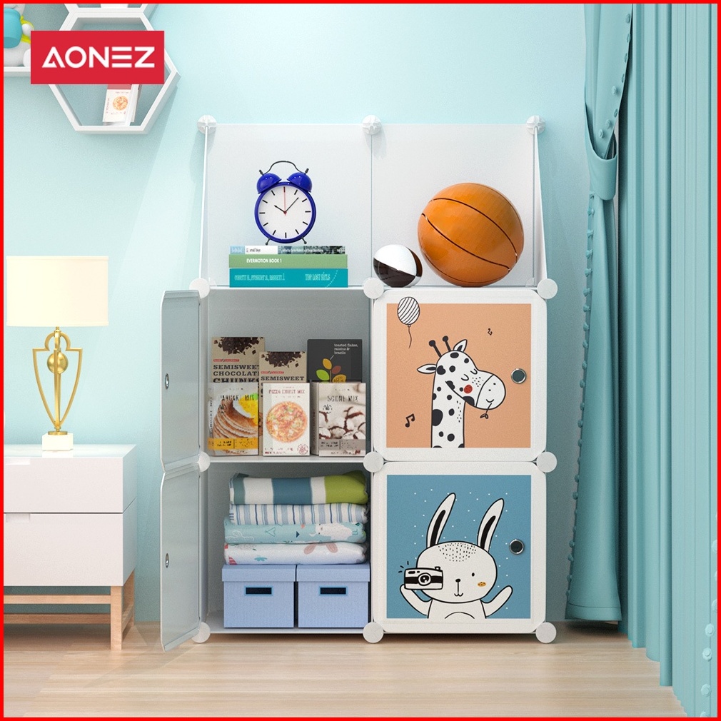 Aonez Lemari Plastik Lemari Pakaian Anak Wardrobe 6 Muka 6 Slot Dengan Pagar Plastik