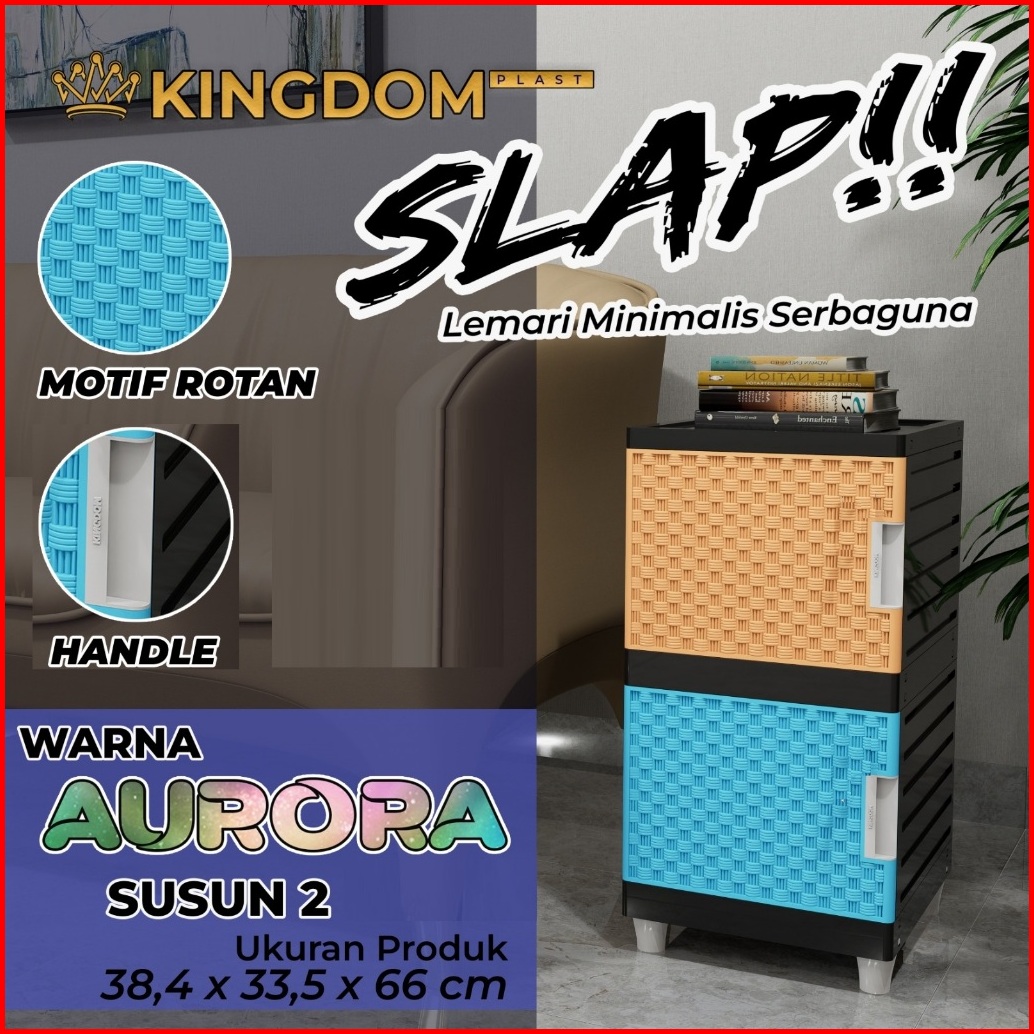 Kingdom Lemari Plastik Serbaguna Slap Aurora Hitam Kunci Motif Rotan Laci Putih