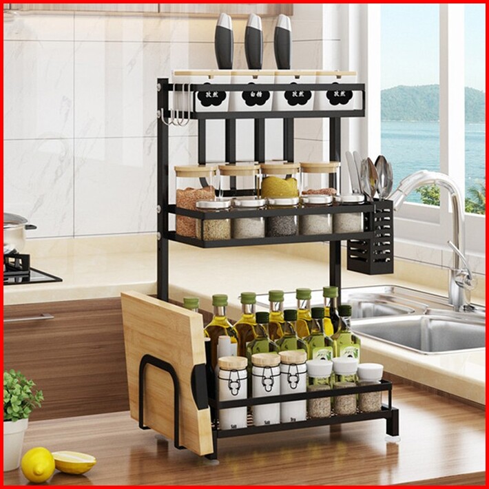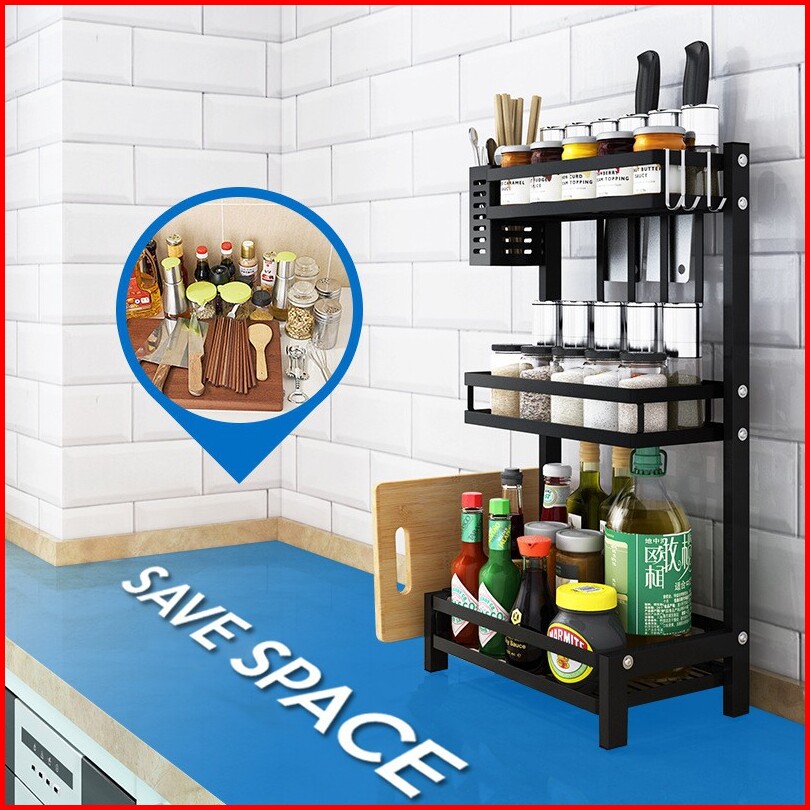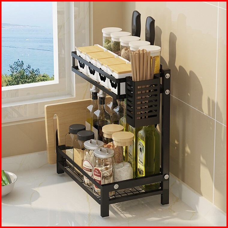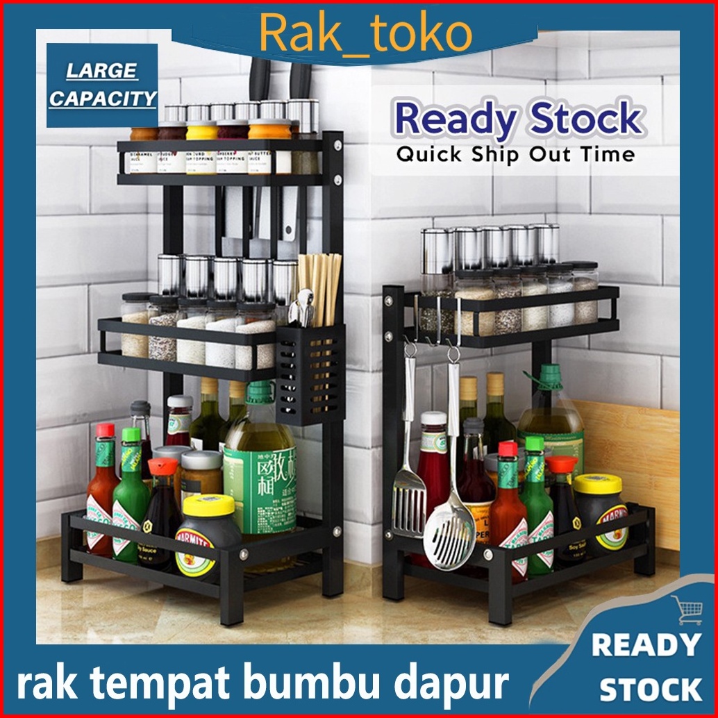 Rak Bumbu Stainless Steel Rak Dapur Tempat Bumbu Botol Susun Rak Serbaguna 2 3 Tingkat